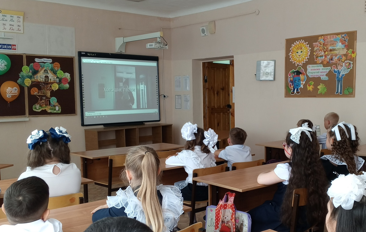 1 сентября второклассники собрались в своём классе на первый урок Знаний. В этот день они посмотрели фильм "Хорошие песни" в рамках проекта "Киноуроки в школе". Дети познакомились с героем фильма мальчиком Дениской и женщиной Галиной Фёдоровной. Школьники узнали о том, что хорошие песни об"единяют людей. Все вокруг становятся позитивными. Ребята первым делом после просмотра вспомнили о своих одноклассниках - летних именинниках. Они поздравили друзей с прошедшим Днём рождения. Ребята сами себе пожелали в предстоящем новом учебном году учиться старательно и с увлечением, а символом этого пжелания выбрали отметку "пятёрку". А ещё на красном сердечке написали свои пожелания добра, блага, успеха ребятам всей нашей школы. Как хорошо, что все посмотрели фильм "Хорошие песни" одним из первых в учебном году. Начинать год с добрых пожеланий себе и всем окружающим - это здорово! Желаем всем ДОБРА!