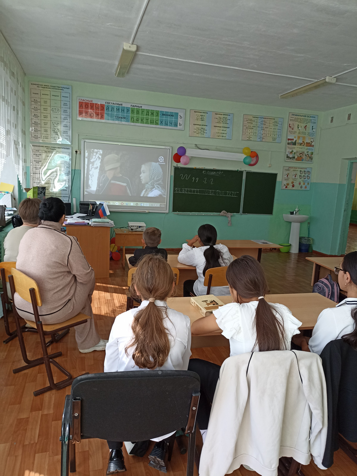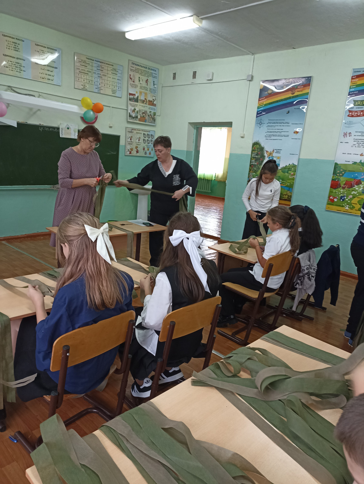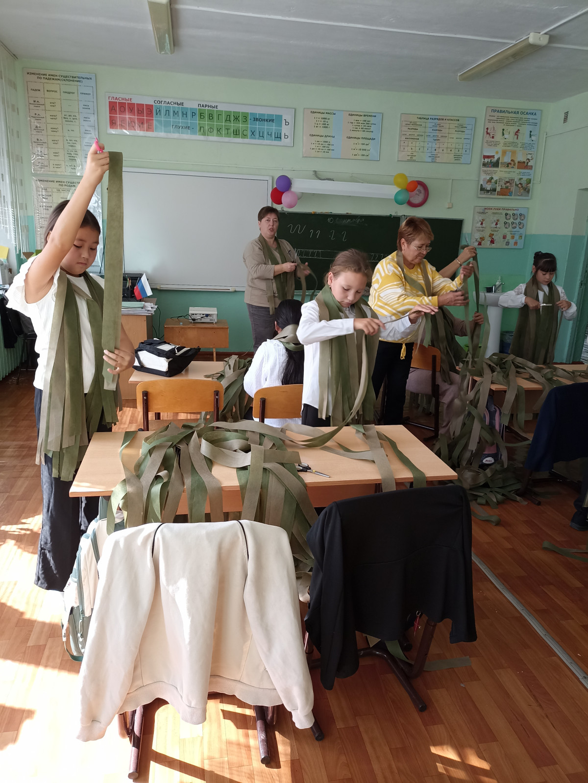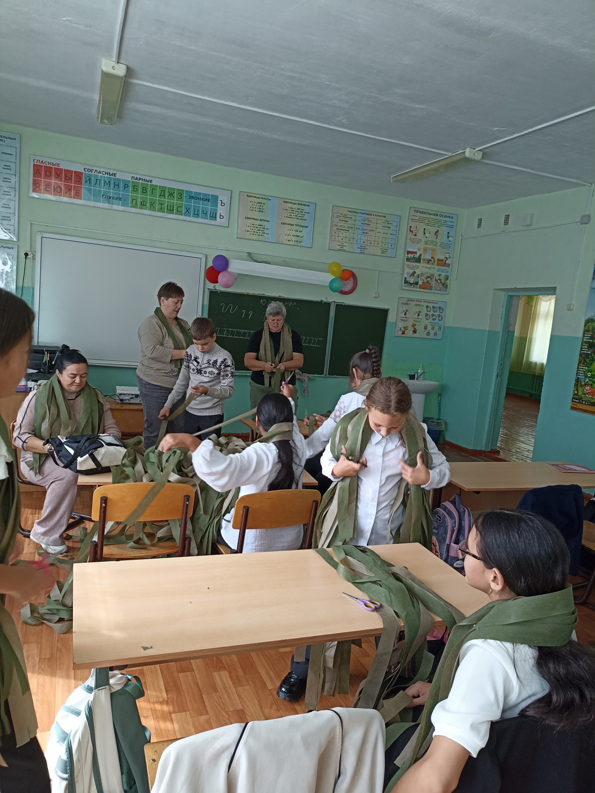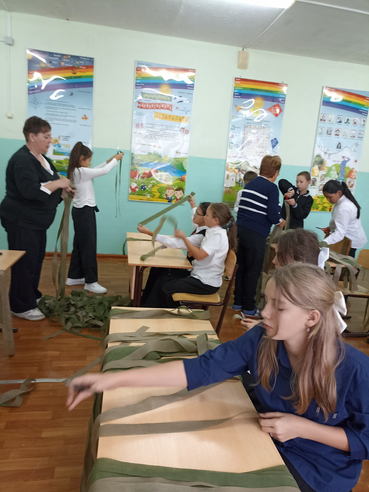 Ученики 3и 5 классов вместе с родителями посмотрели фильм «Другой мир». Фильм заставил задуматься и детей, и взрослых. После небольшой паузы все активно участвовали в беседе. Высказывали свои мысли. Делились впечатлениями. Сколько человечество существует, всегда стремилось лучше жить. Но человек не может достигнуть чего-то не имея цели. В данный момент у нас одна цель и одно общее желание жить под мирным небом. Несколько лет ребята нашей школы помогают бойцам СВО. Ребята предложили продолжить эту работу в новом учебном году. Решили помочь волонтёрам нашего села в изготовлении маскировочных сетей; резали ленточки для плетения. Детям помогали работники СДК, родители и ученики 6 класса. За работой вспоминали наших односельчан, которые находятся на СВО. Вместе нарезали более тысячи лент. Волонтёры остались довольны. Теперь их работа пойдёт быстрее. Вместе мы приближаем Победу!