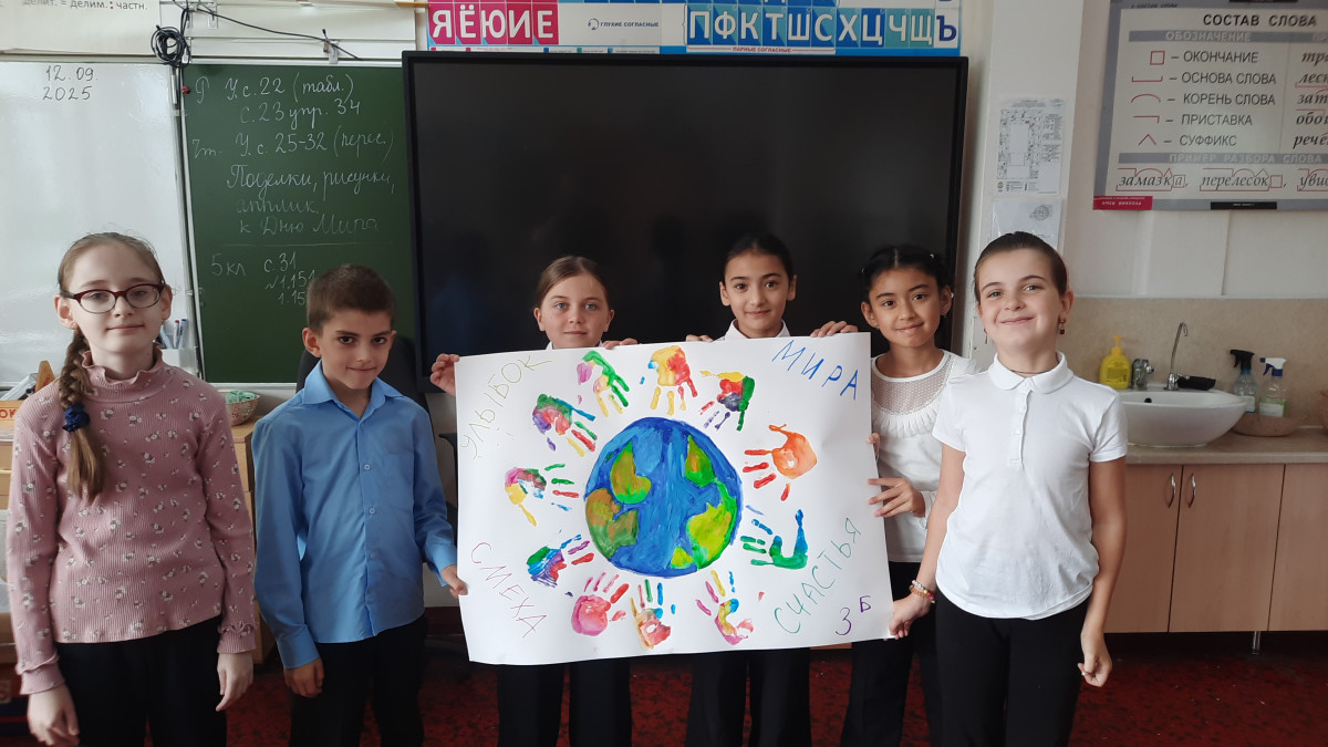 На классном часе, посвящеггом Дню мира ребята выясняли, в чём сила дружбы, которая приводит к миру. Отвечали на вопрос: - Что же такое дружба?Зачем нужен мир? Как стать дружелюбным? В конце классного часа ребята нарисолвали плакат, посвященный миру, дружбе, улыбкам