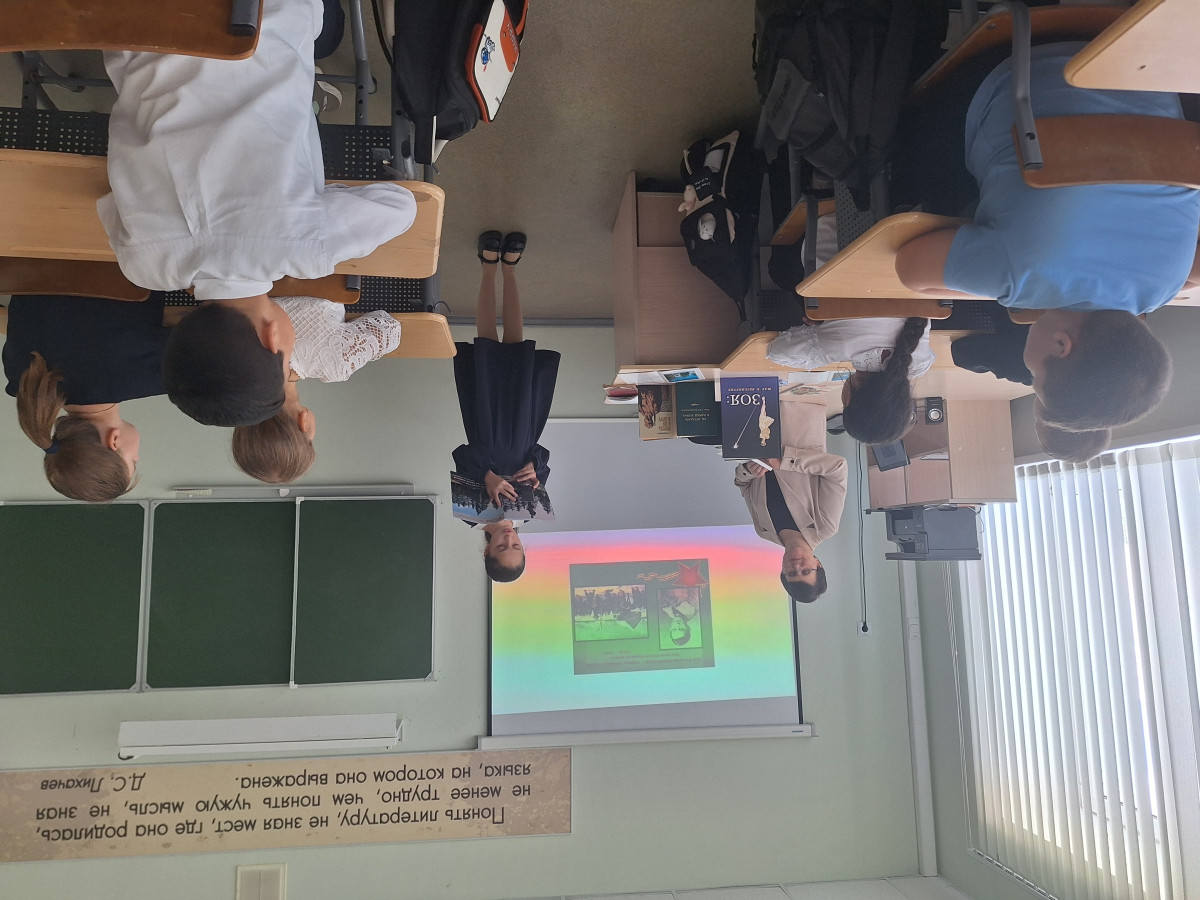 Учащие 5 класса просмотрели фильм "Навсегда", который заставил их задуматься над понятием "отвага". Дети рассказывали о своих дедушках и бубушках, проявивших это качество при защите своей страны. После их сообщений выступила библиотекарь Раева Эля Валентиновна, которая рассказала о подвиге Зои Космодемьянской. Ребят до слёз затронула история Зои. Подготовленные ученики читали стихи о Зое.