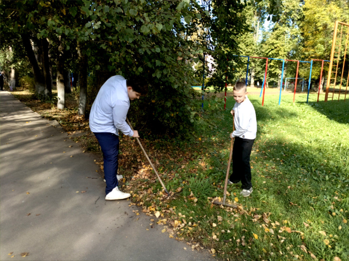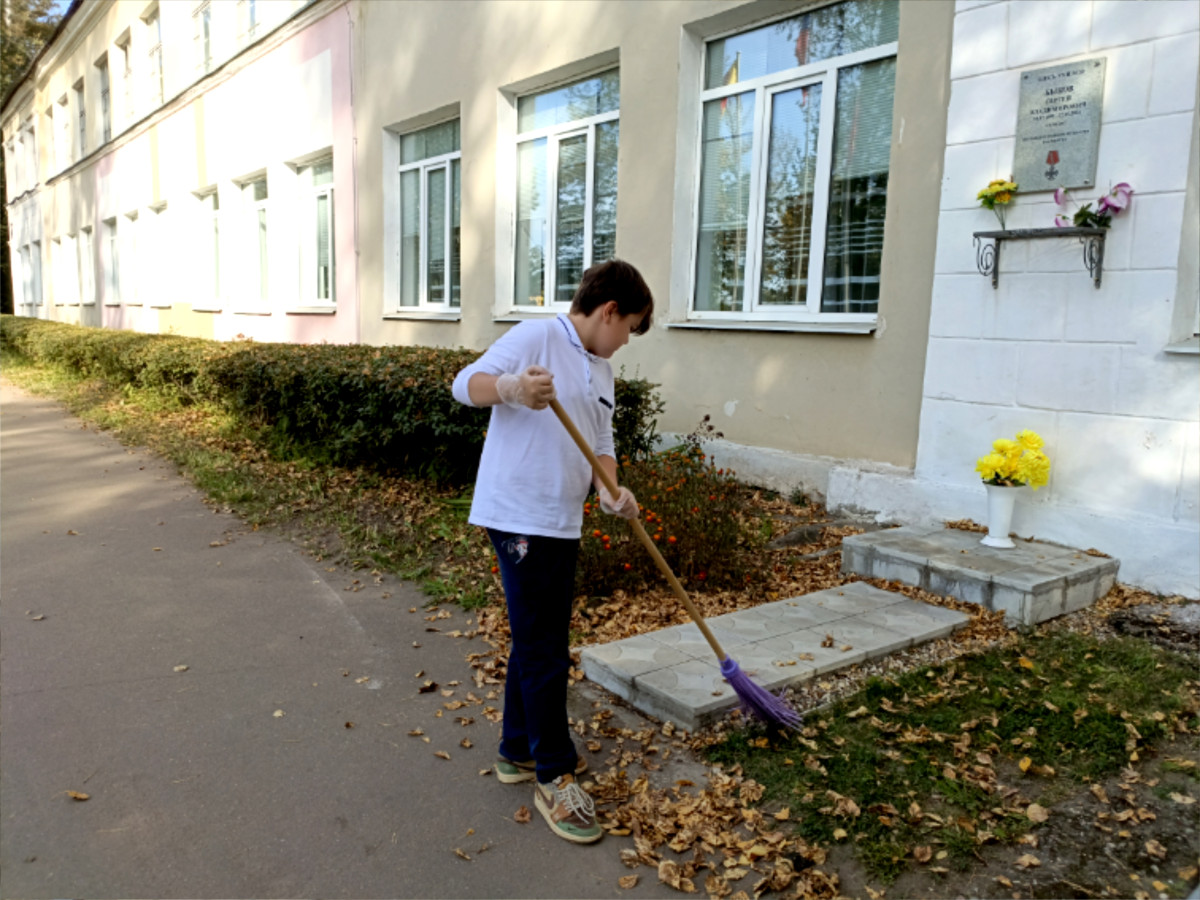 Ребята решили провести уборку территории школы. Сухая и теплая погода— оптимальные условия для работы на улице. По руководством советника директора по воспитанию Синкевич С.М. 15 сентября прошла социальная практика - общественно полезное дело: ребята помогли в уборке территории школы нашему уважаемому Ивану Калиновичу. Каждый из ребят получил положительный заряд эмоций и понимание сопричастности к исполненному коллективному делу.
