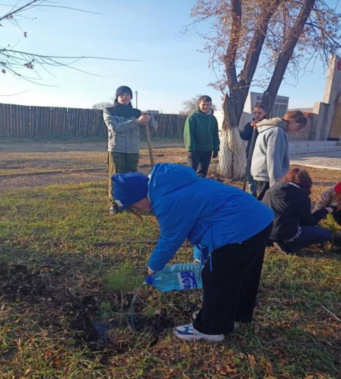 От Хакасского плодопитомника Боградского района были привезены саженцы деревьев для посадки на территории местного памятника, погибшим участникам Великой отечественной войны. Команда ВЭН, в субботу, обзвонили всех своих одноклассников и высадили деревья. После высадки деревьев, ребята прошлись по улице Советская, своего села Советская Хакасия и убрали придомовую территорию у пожилых людей.