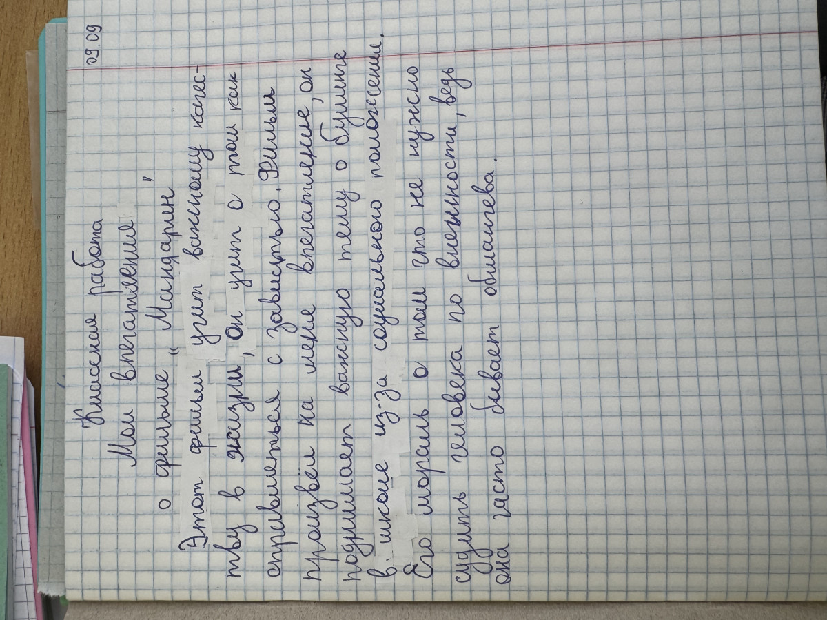 В рамках проекта «Киноуроки в школах России» учащиеся 7-А класса МБОУ СОШ №4 п.Ванино посмотрели и обсудили фильм "Мандарин». Кинофильм дети смотрели с большим интересом. Они увидели, как простой мандарин стал причиной настоящей дружбы, победившей зависть и обиду. Ребята совместно пришли к выводу, что важно уметь радоваться успехам других. После просмотра и обсуждения фильма были проведены игры на сплочение коллектива, также ребята проявили инициативу и написали свои впечатления от фильма.