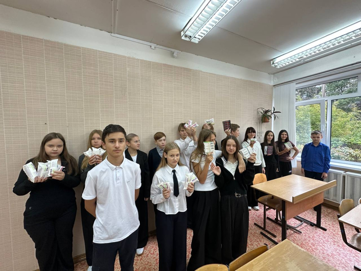 На линейке выноса флага Российской Федерации, мы рассказали о своей задумке другим ребятам. Класс из параллели тоже включился в это дело.