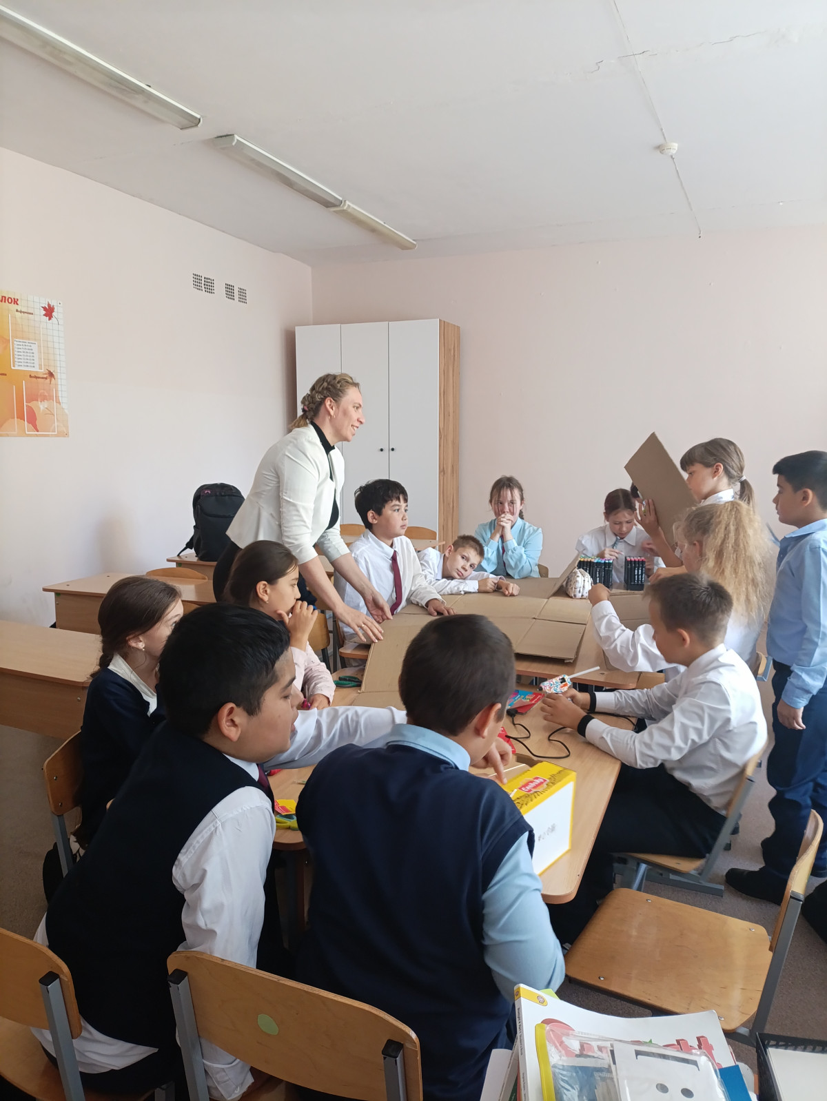 В ходе обсуждений решили,что качество "коллективизм" можно использовать не только в своем классе,но и в школе со сверстниками. Совместно с обучающимися выбрали главную фразу фильма: "Самая прекрасная жизнь-это жизнь прожитая для других" и решили вместе помочь братьям нашим меньшим и сделать кормушки. В течении недели дети совместно с родителями и классным руководителем собирали нужный материал. На следующем занятии "Киноурока", расделив работу на микро-группы, сделали красочные кормушки и, наполнив их семечками, разместили в школьном дворе.