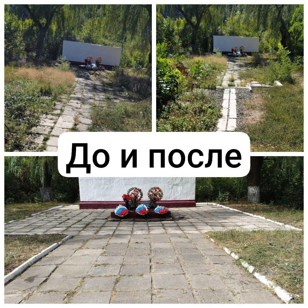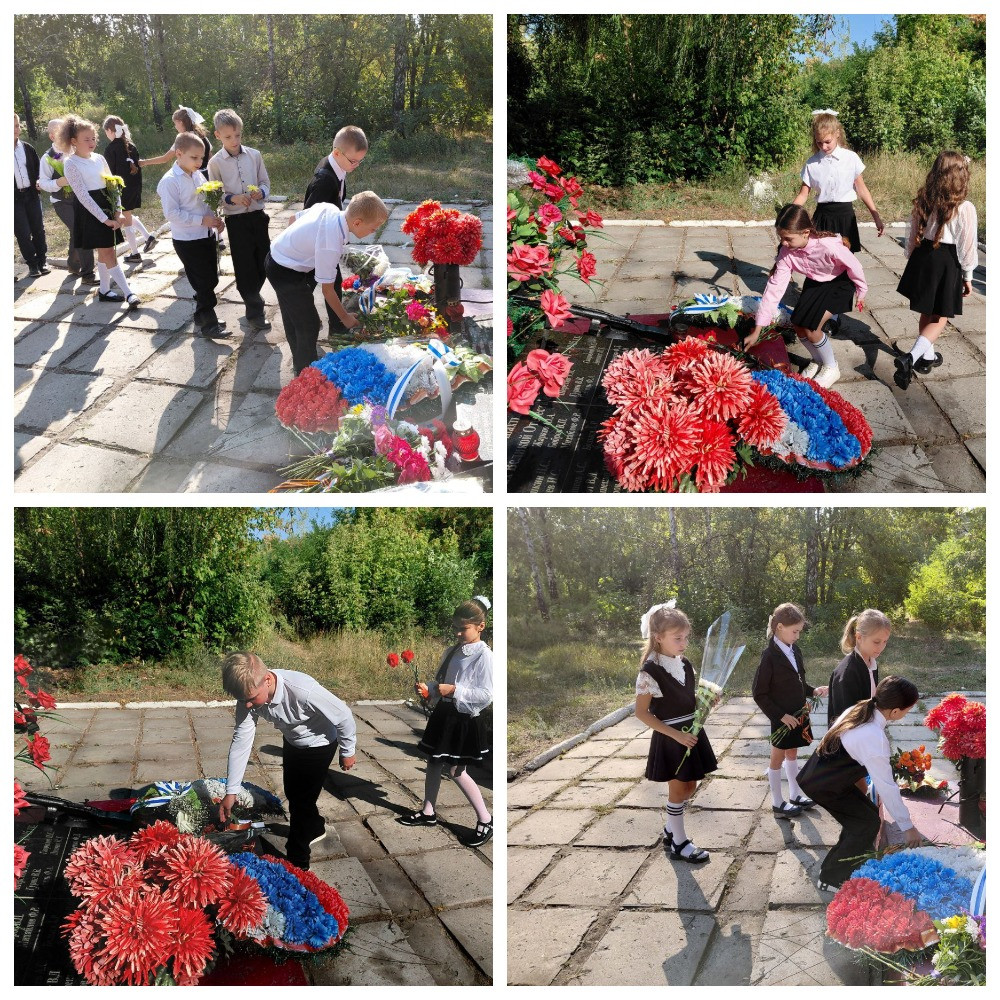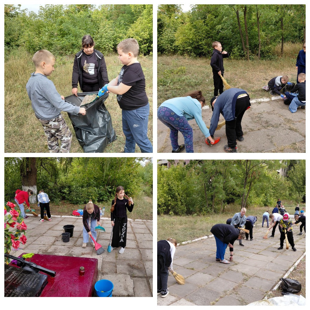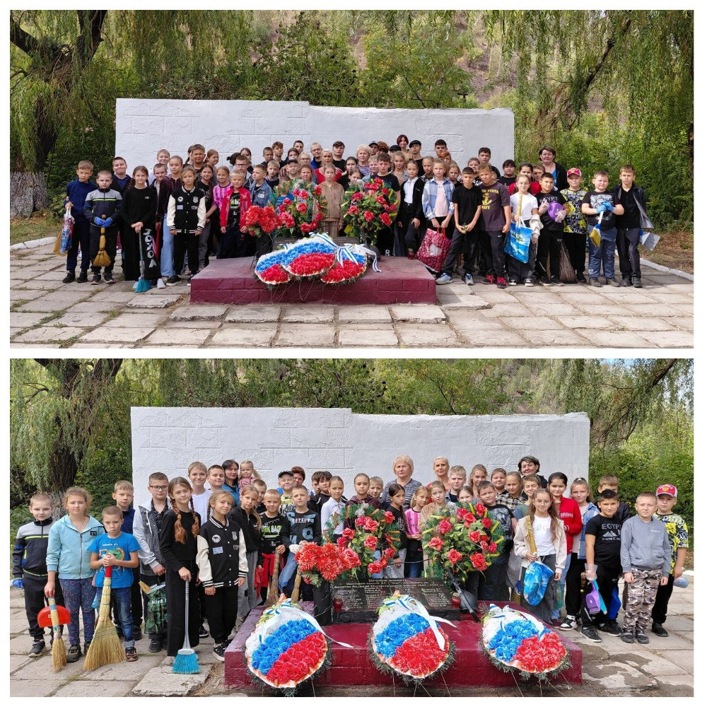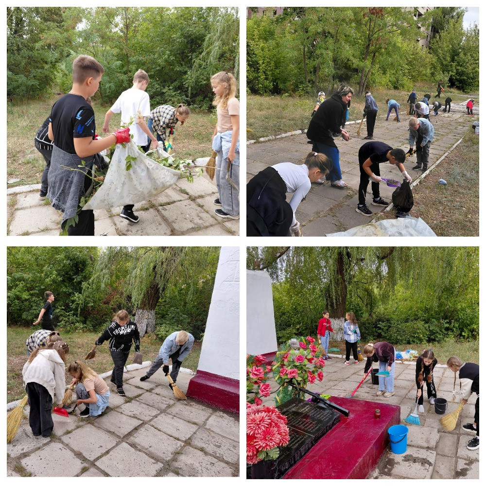 А ещё четвероклассникам выпала честь наводить порядок у памятника тех, кто с честью сложил голову во благо нашей Родины в годы Великой Отечественной войны. За лето территория памятника заросла сорной травой. Четвероклассникам помогали ребята 9-В класса и, конечно, родители. Ребята с честью выполнили свой долг перед теми, кто в 1943 году с кровопролитными боями освобождал наш Донбасс. Чтобы почтить память о героях тех лет, у памятника был проведен Урок Мужества, посвященный очередной годовщине освобождения Донбасса. Ребята возложили цветы и застыли в скорбной Минуте Молчания. В фильме шла речь о том, что жизнь воина, защитника Родины, всегда связывается с понятием чести, а после смерти хранить эту честь должны живущие! И наши ребята понимают это и принимают!