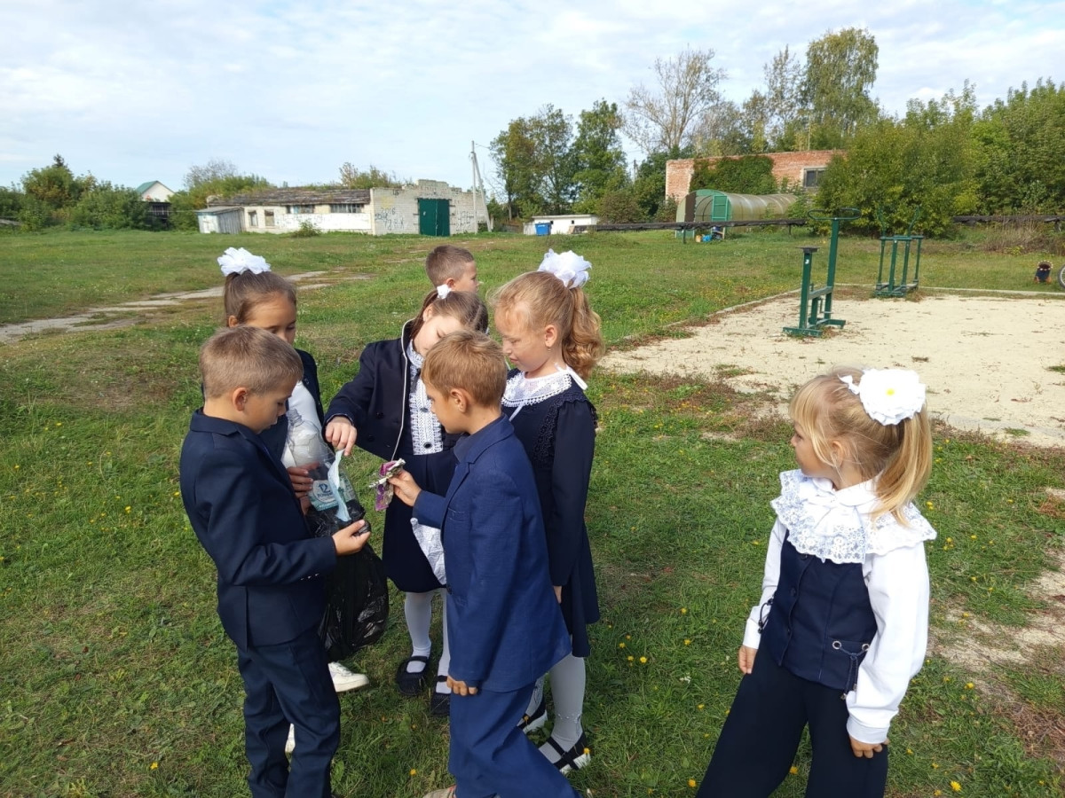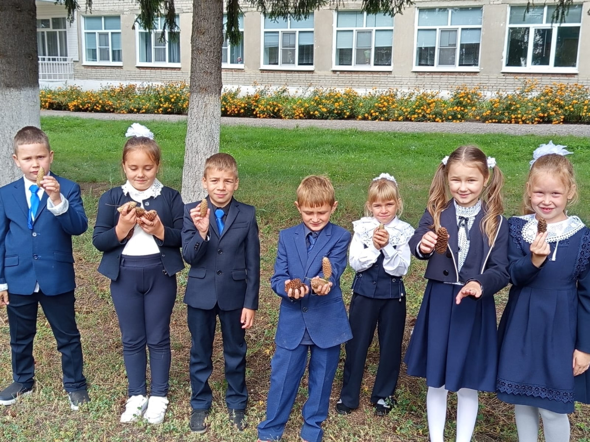 После занятия они провели экскурсию по территории школы. Набрали шишек для уроков труда, убрали мусор с спортивной площадки.