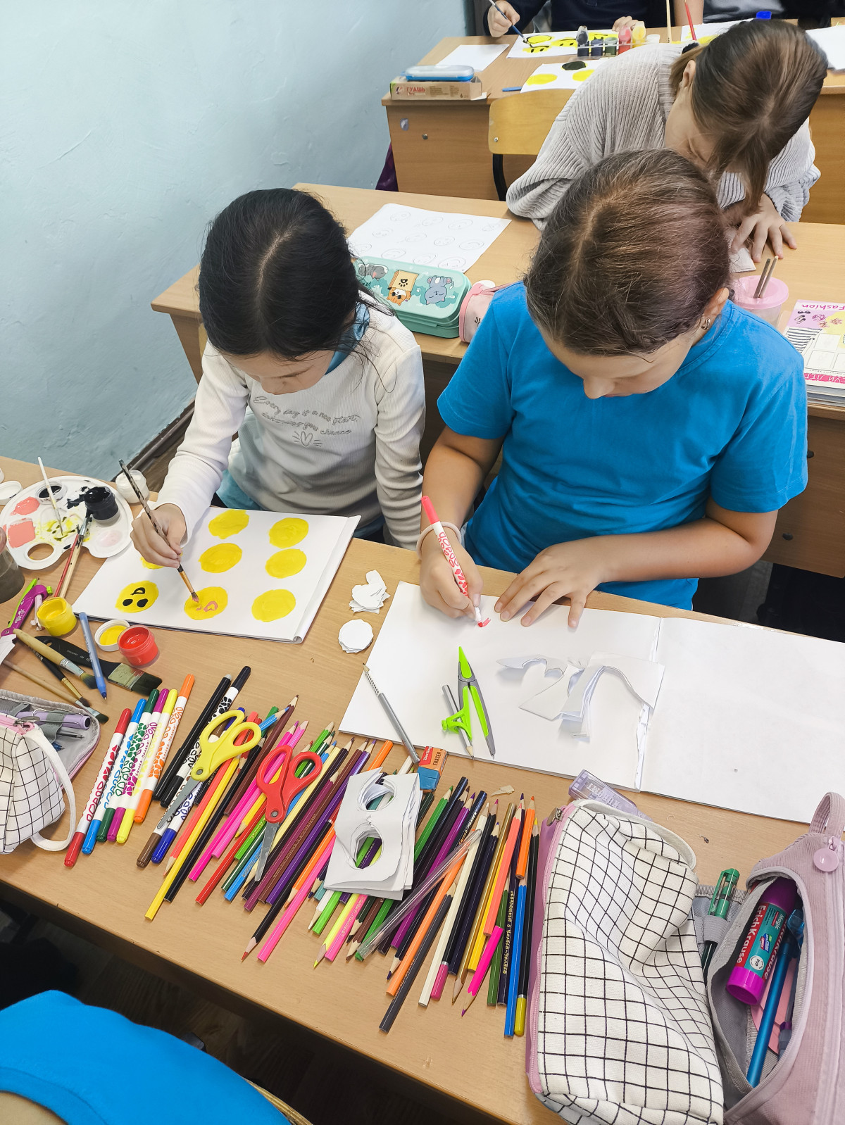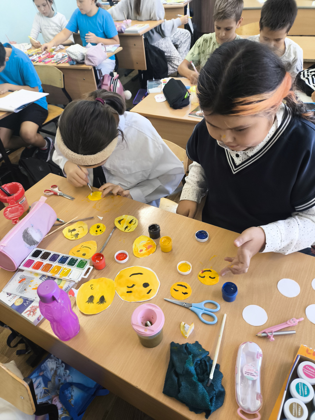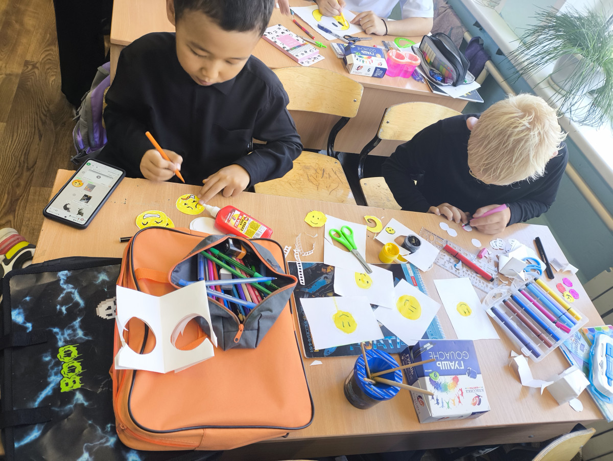 После обсуждения фильма обучающиеся 4 "В" класса провели акцию "Возьми для хорошего настроения". Ребята вместе с классным руководителем изготовили смайлики и раздавали их окружающим людям.