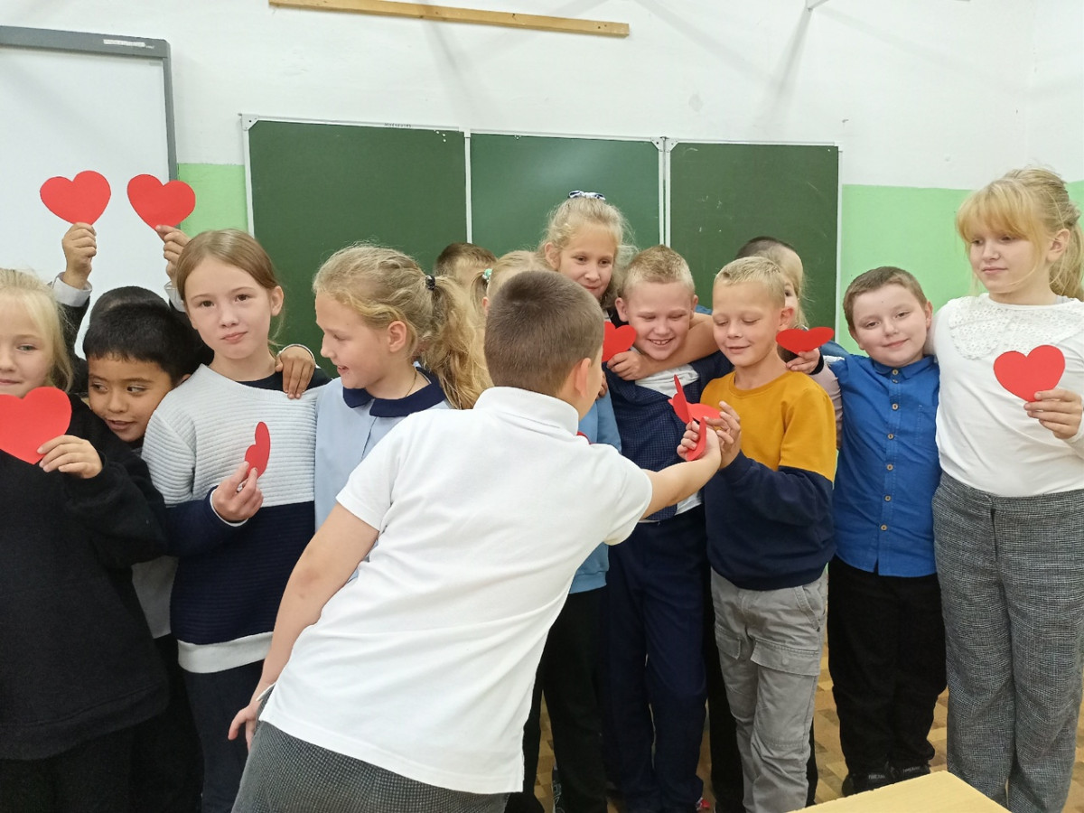 Обсудив фильм, ребята поняли, что доброжелательность может изменять мир вокруг, а песни, объединяют и делают счастливыми людей разного поколения. Поговорили о том, что такое доброжелательность, кто нуждается в этом. В этот день мы поздравляли с днём рождения нашего одноклассника Андрея. Ребята подарили ему свои сердца и хором спели его любимую песню.