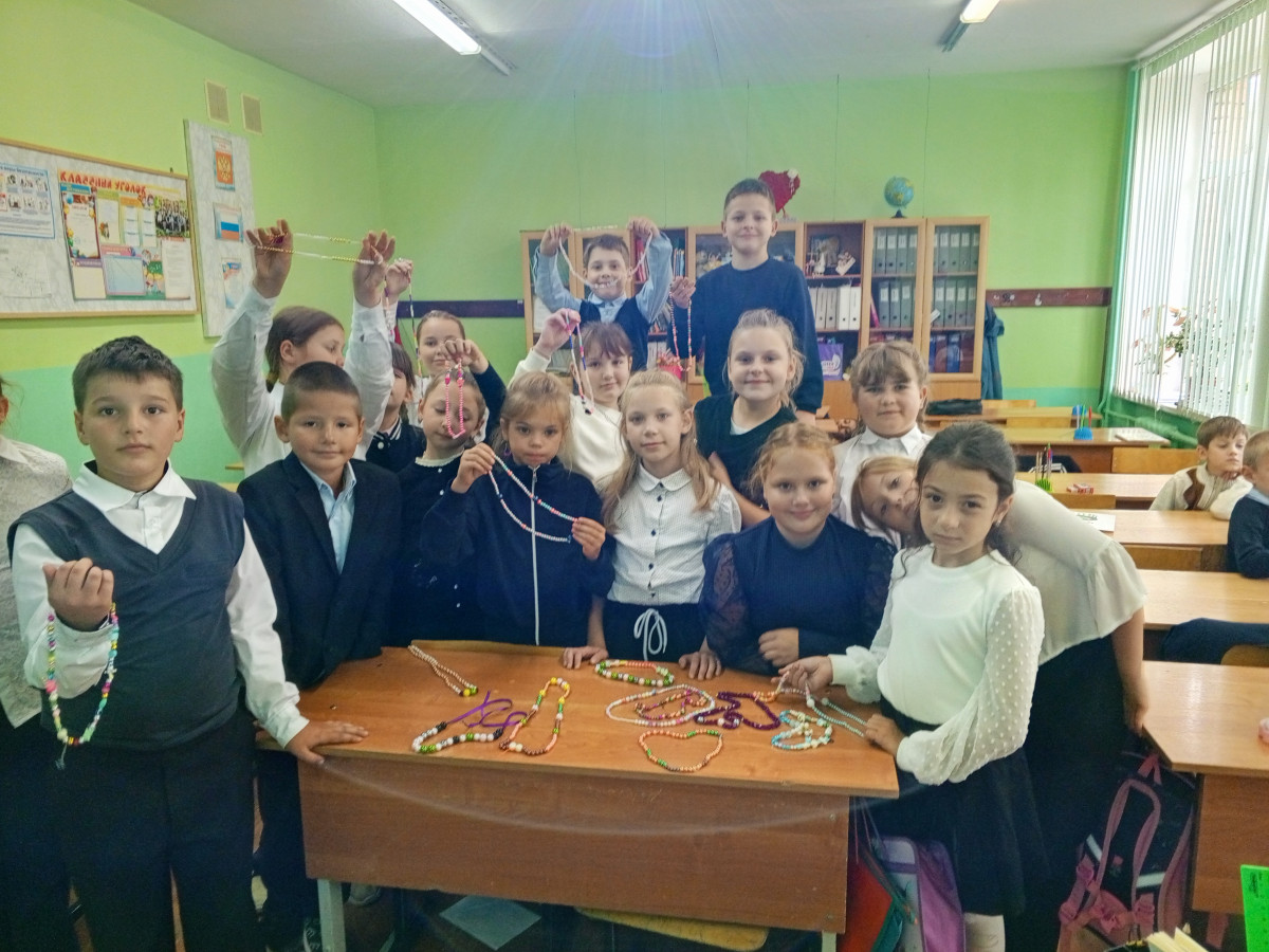 С обучающимися также прошел классный час, на котором ребята решили принять участие в региональной акции « Бусики для бабушки!». Ребята очень старались порадовать бабушек нашего региона, которые находятся в трудной жизненной ситуации и находятся в больнице или в домах престарелых. Учащиеся решили сделать для каждом бабушки, нуждающейся в заботе и внимании, бусы! В ближайшее время бусы найдут своих бабулечек и сделают их жизнь светлее и радостнее! Доброта спасет мир!