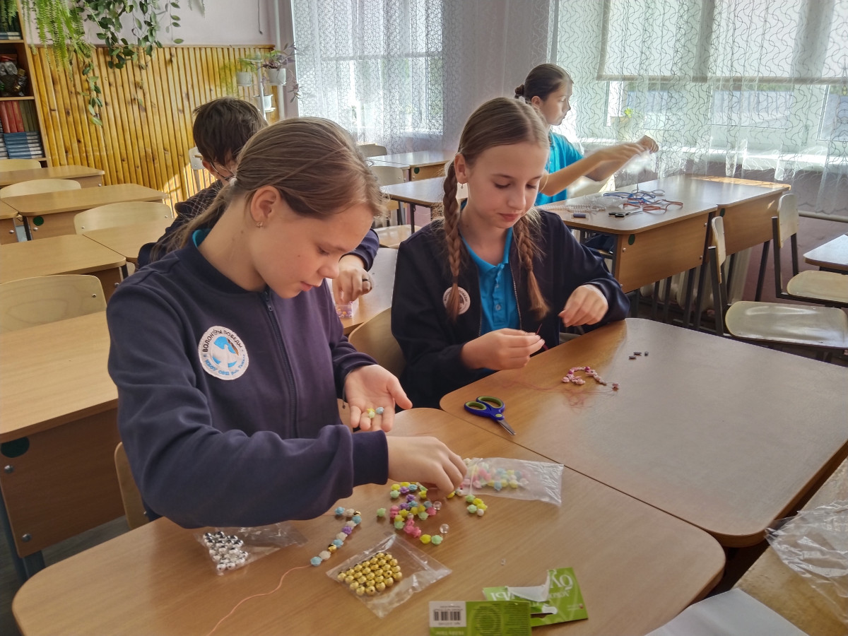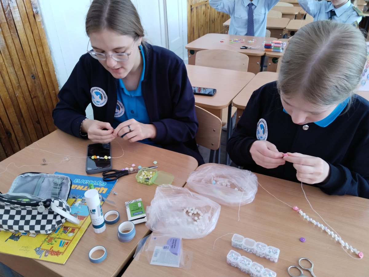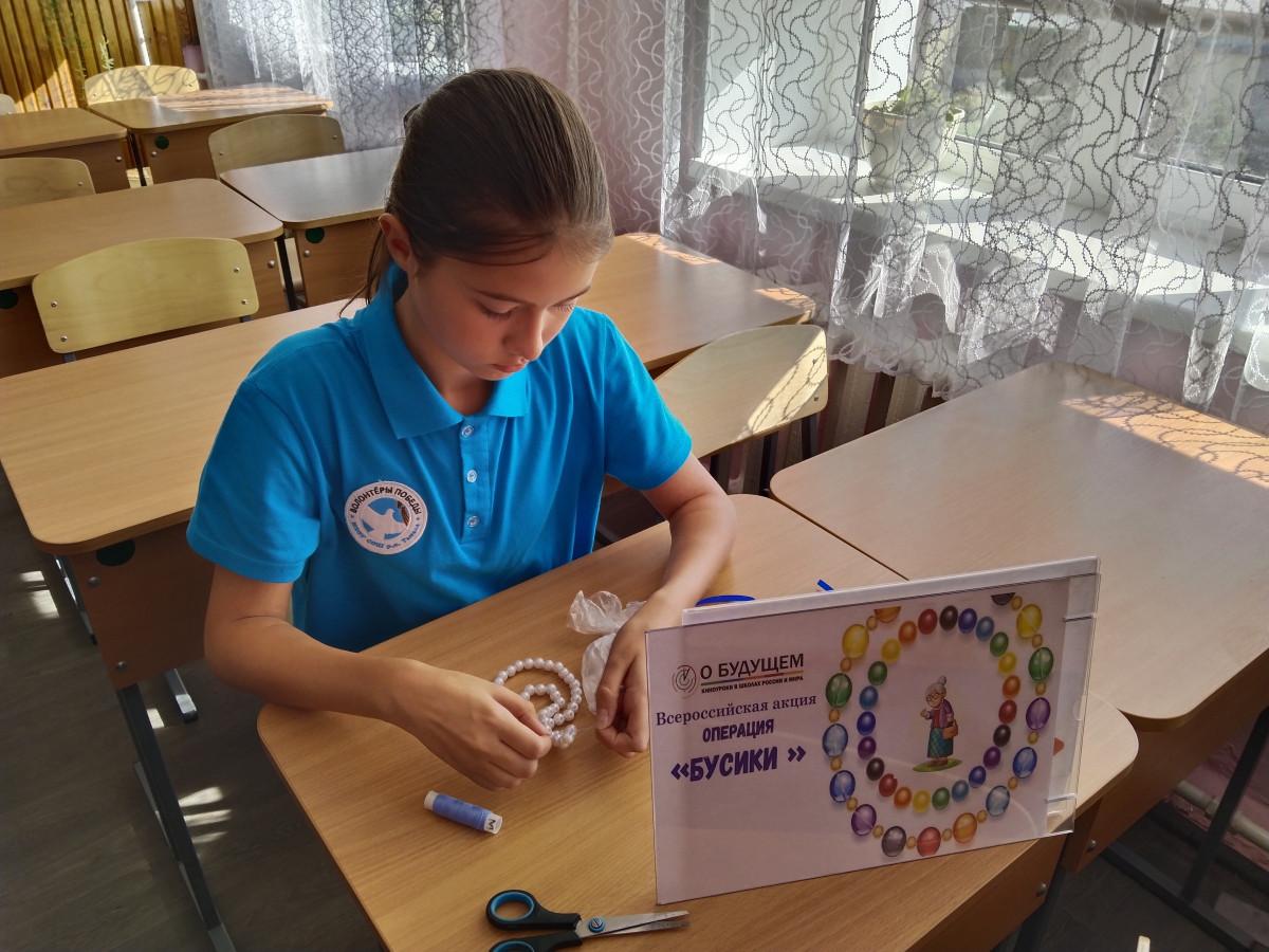 К участию в акции ребята пригласили Волонтеров Победы школы! Мастерская по изготовлению бус будет работать до 30 сентября, ребята продолжают делать бусы и дома с помощью своих близких!
