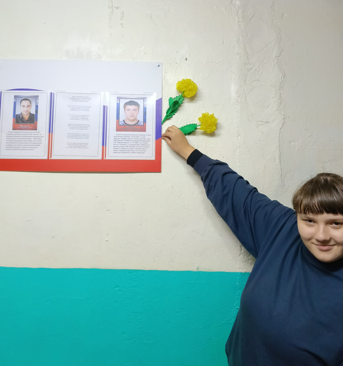 Из нашего посёлка много людей участвуют в СВО. И многие отдали жизни за мир на земле.Мы с нашей стороны их помним, знаем и чтим память о них. В нашей школе есть стенды, открытые в честь помяти о погибших. Мы в любое время можем прийти и почтить память погибших минутой молчания, возложить цветы.