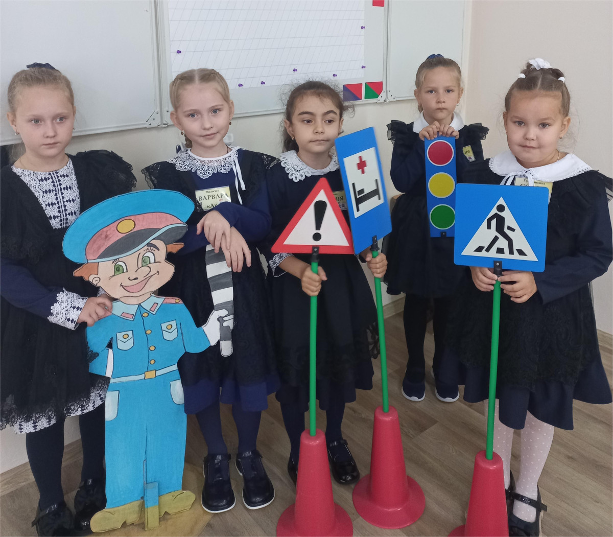 Подготовили проект выступлениядля первоклассников школы. Показали сценки из жизненных ситуаций на дорогах под дивизом "Каждому положено, знать правила дорожные". В конце выступления пожелали ребятам -быть всегда внимательными на проезжей части и быть здоровыми.