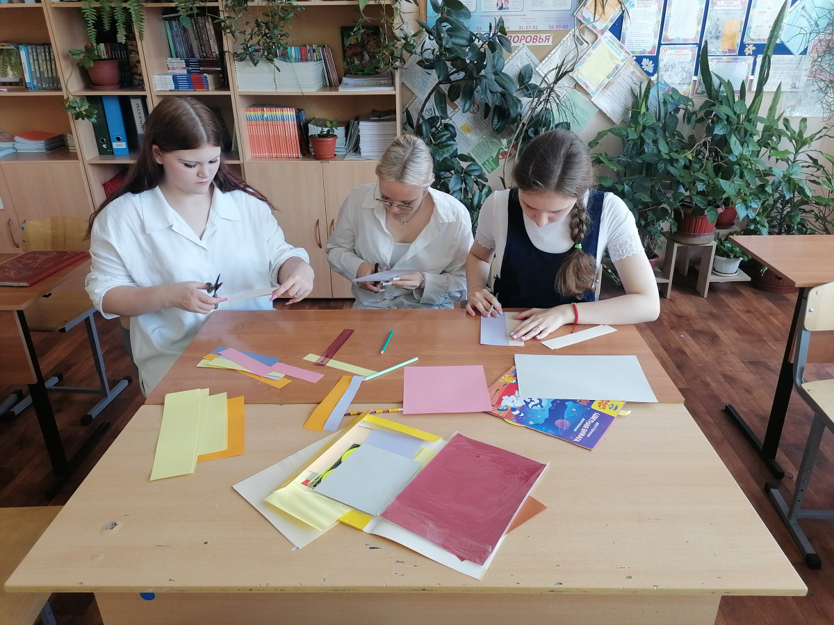 Учащиеся предложили своими руками сделать закладки для учебников, одному из детей-инвалидов по зрению нашего ЦО№18, г. Тулы. В социальной практике приняли участие три девочки, они смастерили закладки, которые потом были переданы Ангелине, для пользования.