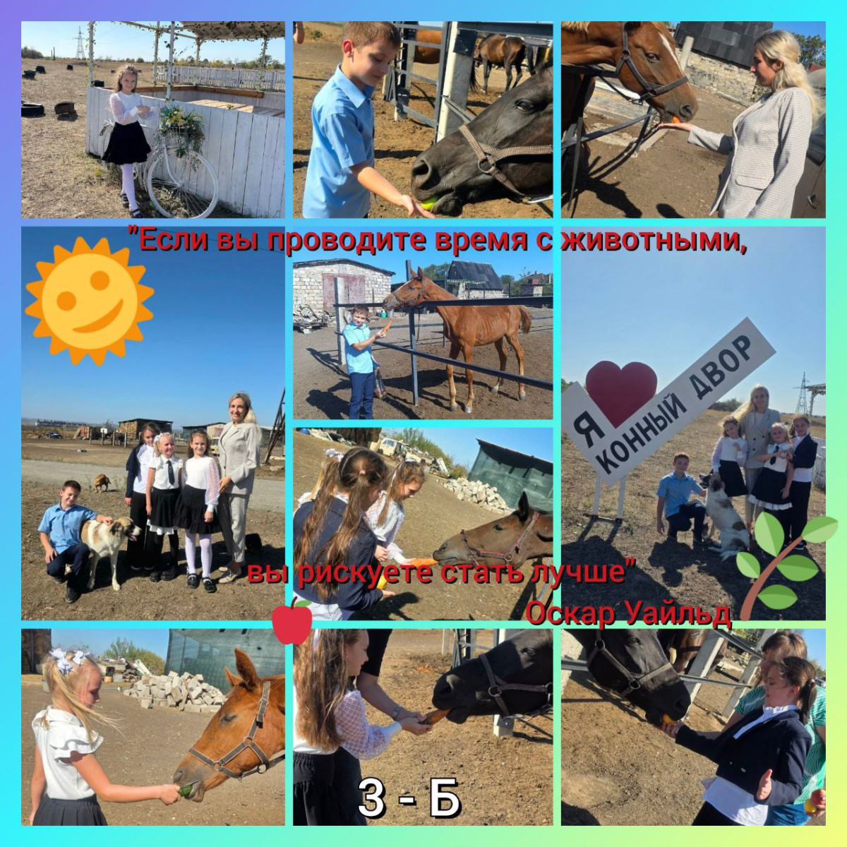 В рамках реализации проекта "Киноуроки в школах России" ученики 3-Б класса ГБОУ ЛНР СМГ#15 им. В.А. Сухомлинского инициировали социальную практику по киноуроку "Песня ветра". Просмотр фильма вызвал у ребят желание посетить конный двор, находящийся в г. Алмазная. Третьеклассники, их родители, классный руководитель 3-Б, как полагается, не пришли в гости с пустыми руками, а узнали, чем можно кормить лошадей, и привезли животным угощения: яблоки, морковь, тыкву и другие овощи. Нескольким ученикам удалось лично посетить ферму и покормить животных из рук, что вызвало у ребят неподдельные эмоции: сначала дети боялись, что лошади их укусят, но благодаря поддержке взрослых скоро освоились и с восторгом угощали животных! Огромная благодарность за участие в социальной практике выражается родителям учеников 3-Б класса, а также сотрудниками конного двора г. Алмазная за их труд, за предоставленную возможность расширить кругозор детей, за вклад в воспитание в младших школьниках любви к природе! https://vk.com/wall-223097787_494