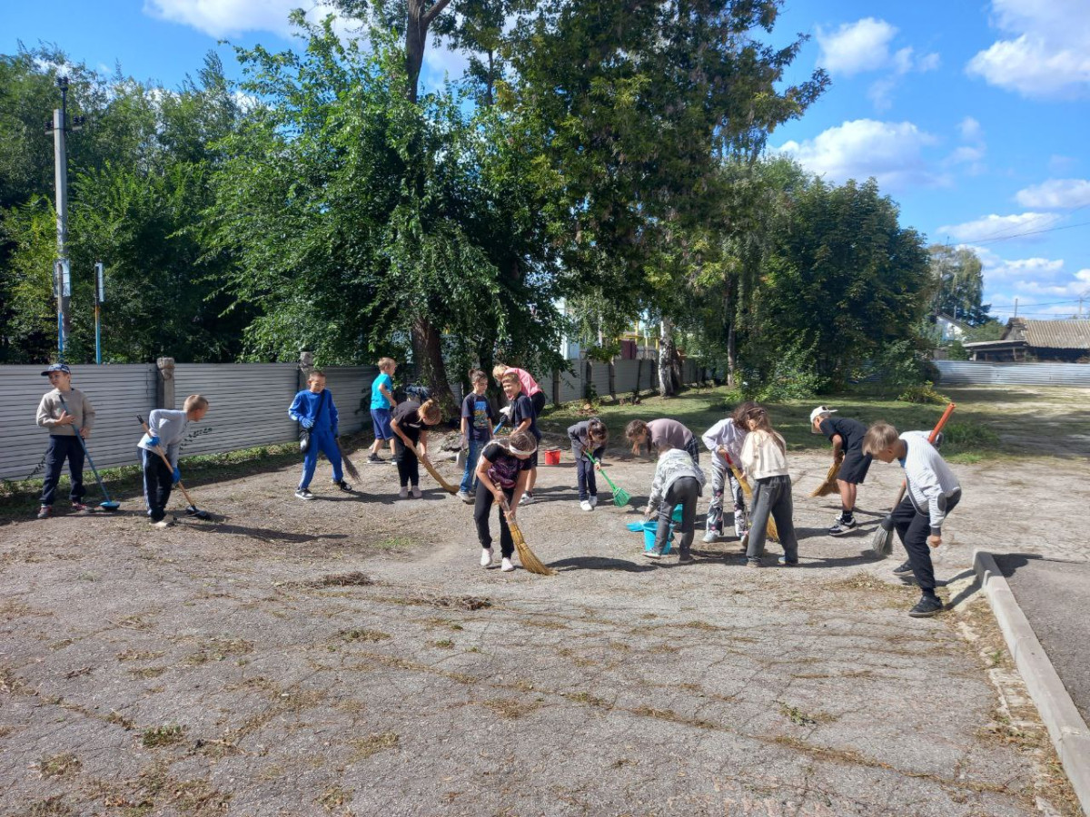 Привлекли всю дружную школьную команду. Во время уборки территории вспомнили много душевных песен.