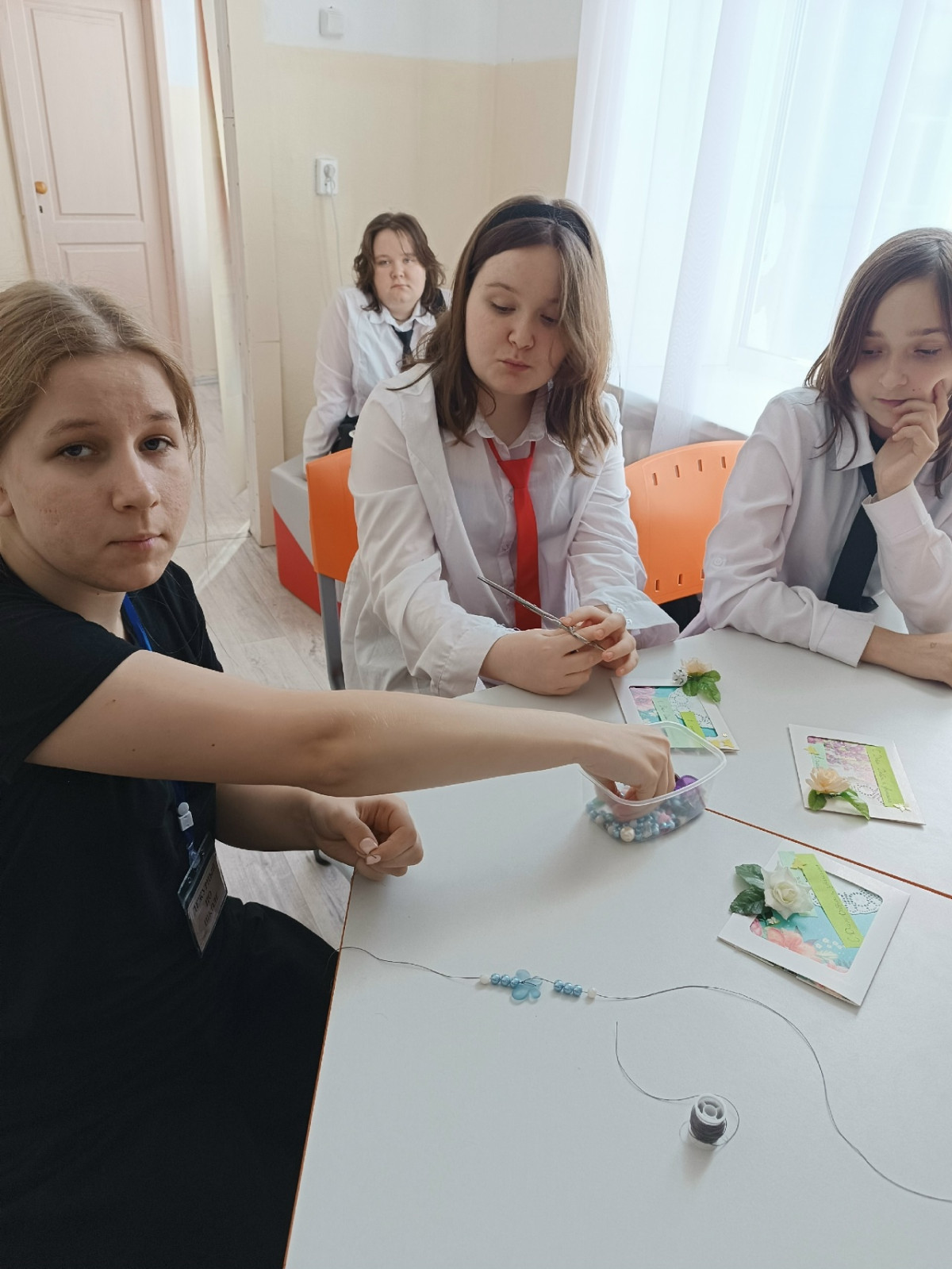 Самым сложным и важным здесь было перейти от слов к действию. Под наставничеством классного руководителя девочкам 9 класса было предложено своими руками сделать бусы для пожилых женщин из геронтологического центра г. Твери. Девочки проявили инициативу и креатив, а также учли возрастные особенности и выбирали только крупные бусы. В процессе несколько ученик предложили принести бусины из дома и продолжить мастерить сюрпризы для одиноких бабушек.