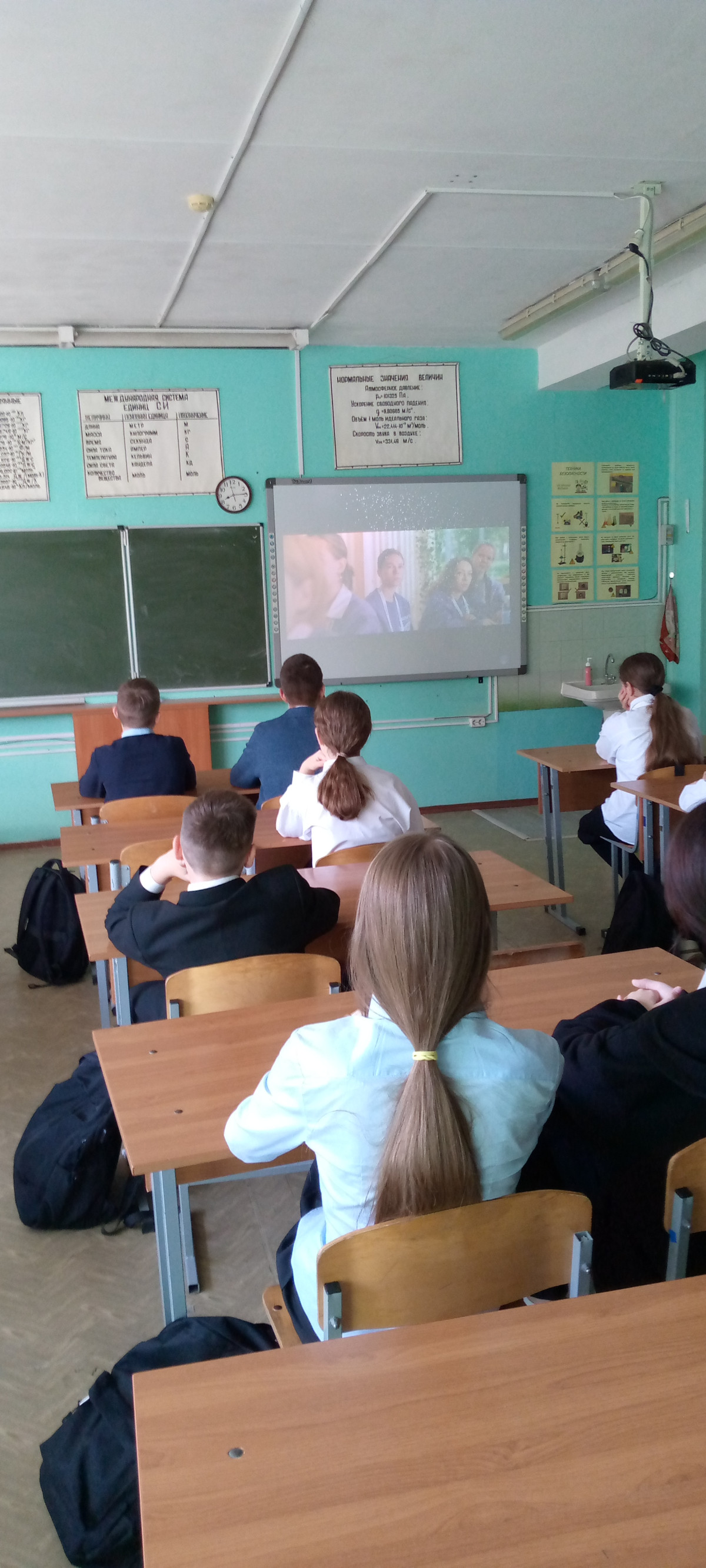 Ученики 7В класса в рамках проекта «Киноуроки в школах» посмотрели фильм «809. или Один день Вовки во исполнение Указа». Этот фильм затрагивает тему активной жизненной позиции.
