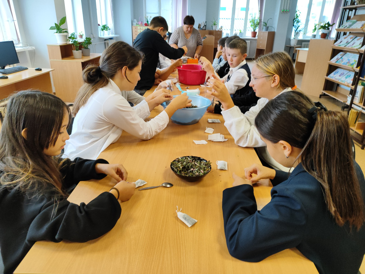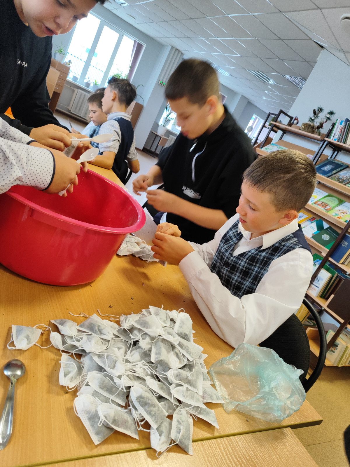 Их коллективный дух, пробужденный фильмом, нашел свое воплощение в добром деле. Ребята решили проявить заботу о наших защитниках, участниках СВО. Родители принесли высушенные травы, заварку. А дети с энтузиазмом взялись за дело: с любовью и старанием расфасовали вкусный и ароматный чай по небольшим пакетикам.