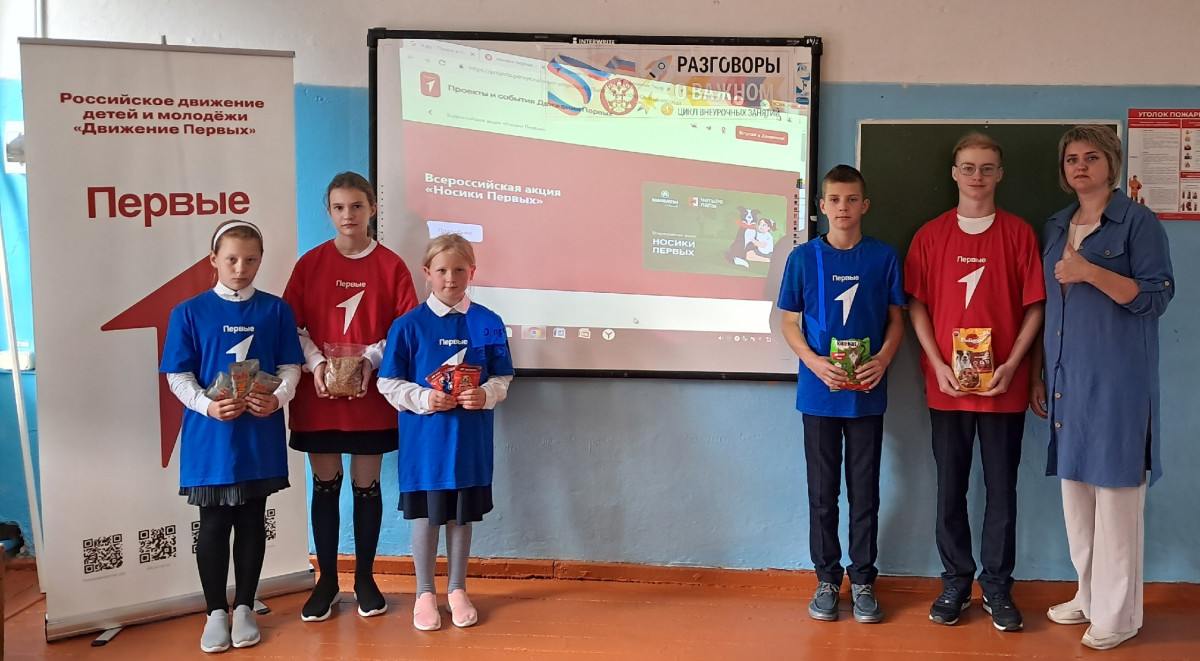 5 сентября 2025 г с учащимися 6 класса был проведен киноурок по фильму "Отыщи моё сердце". После просмотра ребята обсудили, как в фильме раскрывается любовь человека к природе, и пришли к выводу, что именно это качество способно менять людей в лучшую сторону. Как стало с героем фильма Кириллом. Ребята решили присоединиться к всероссийской акции, организованной участниками Движения Первых, под названием "Носики первых" в номинациях "Спешу на помощь" и "Давай поможем". Учащиеся 6 класса привлекли к участию остальных учеников школы и родителей и организовали сбор корма для приюта, а также нарисовали рисунки, призывающие помочь животным, находящимся в приютах. Сработали оперативно! Собранный корм был доставлен в пункт сбора г. Мглина и отправлен в приют для животных г.Брянска "Вторая жизнь".