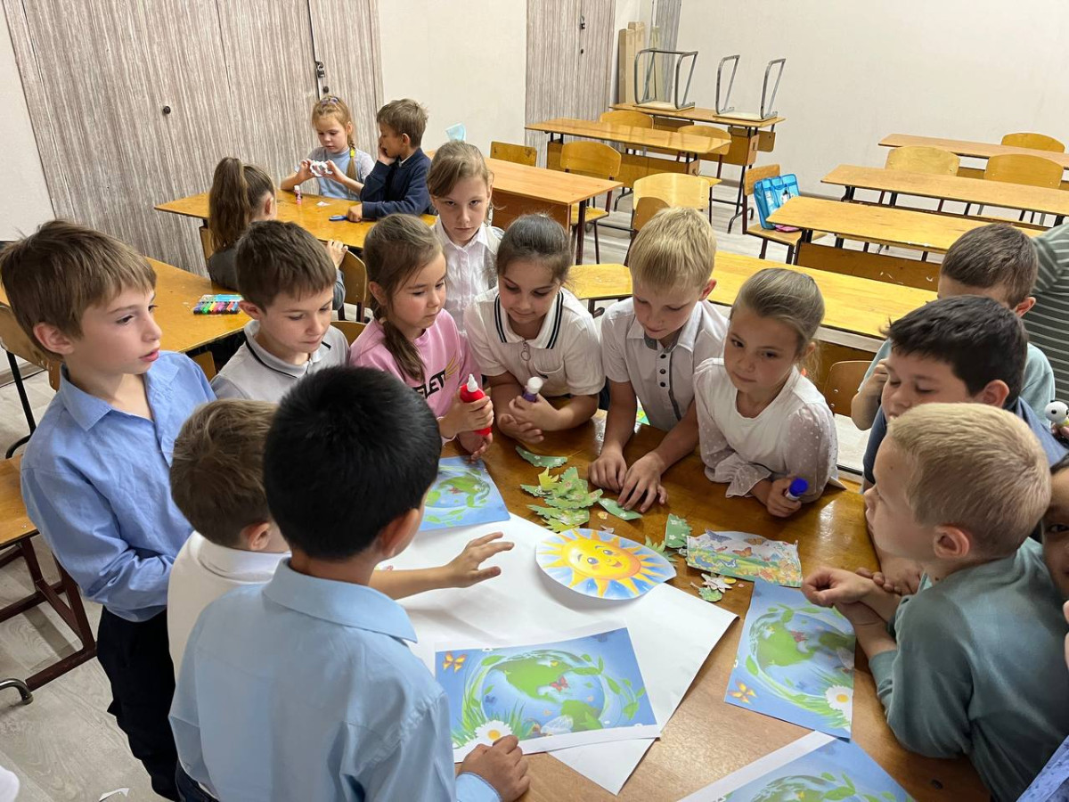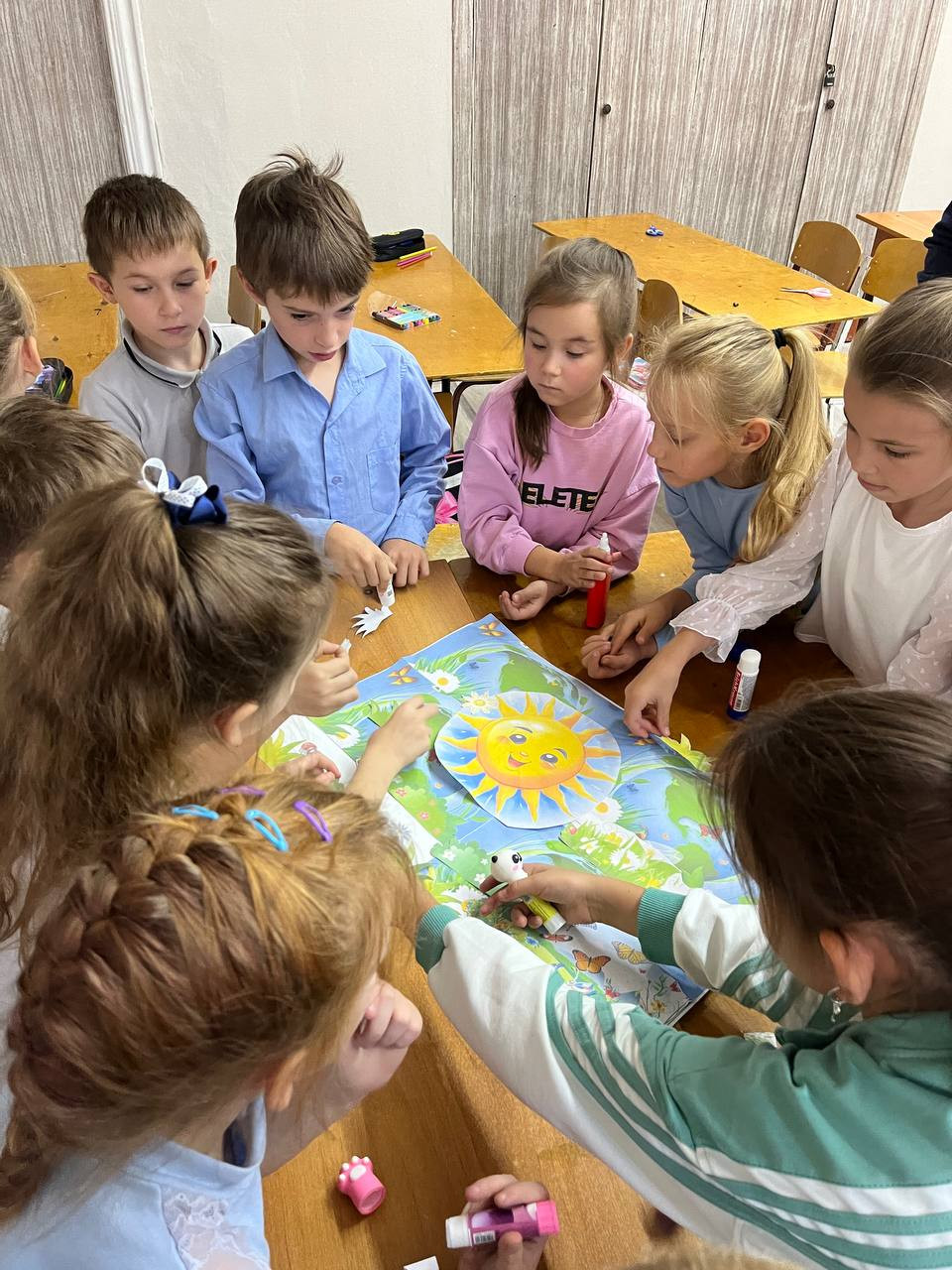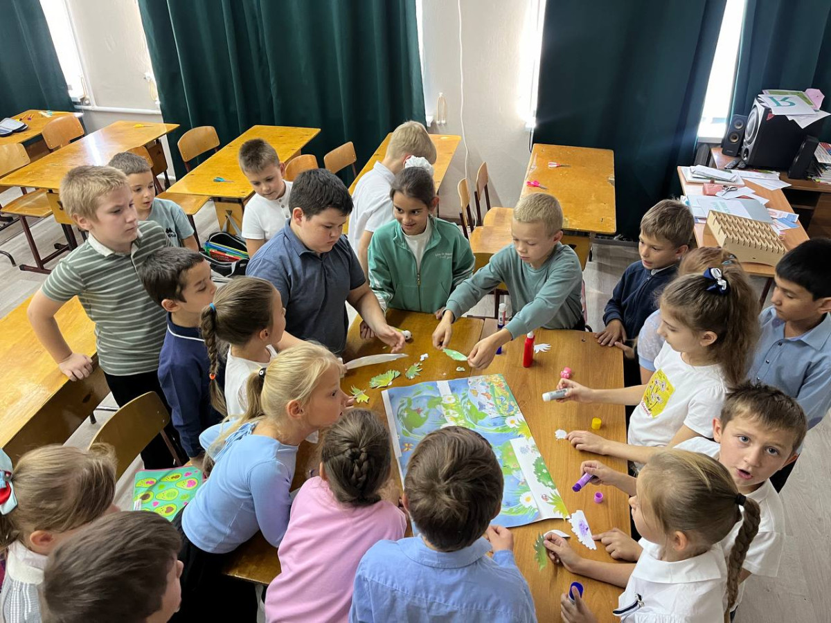 В ходе бурных обсуждений, ребята пришли к выводу о том. что дружелюбие может проявляться не тольтко по отношению к людям, но и в любви к природе и всему прекрасному. окружающему их. После обсуждения второклассники выполнили коллективную работу: "Красота окружающего мира", в которой каждый принял активное участие. Обучающиеся во время выполнения были активны, заинтересованны и дружны. Выполненная картина способствовала развитию умения работать в коллективе сверстников дружно и сплочённо.