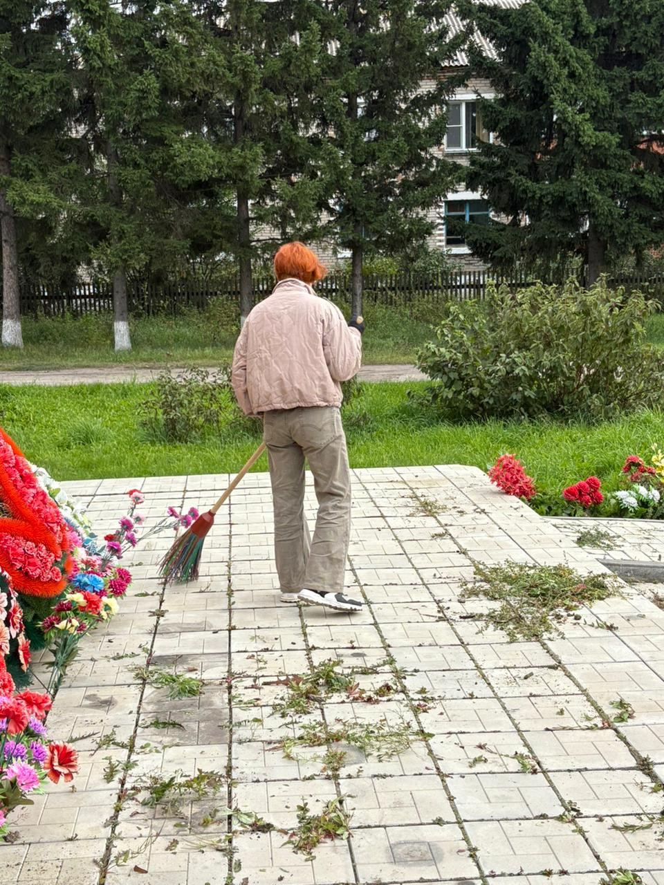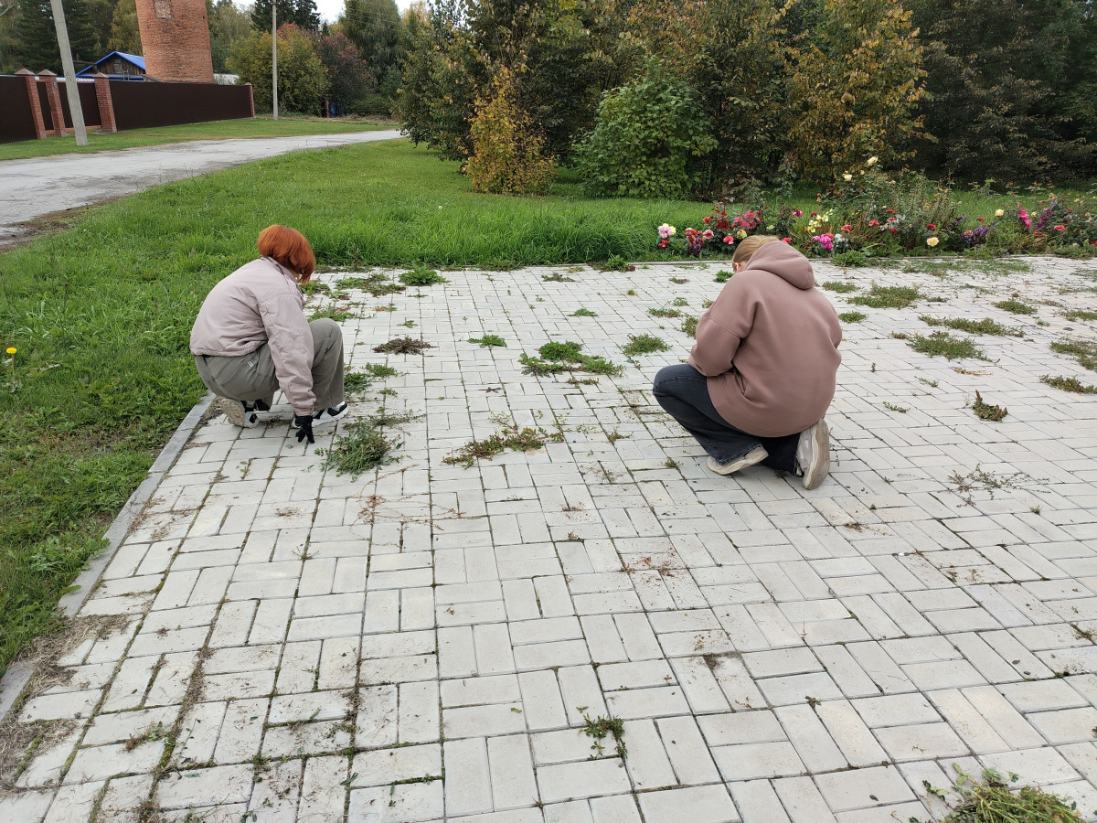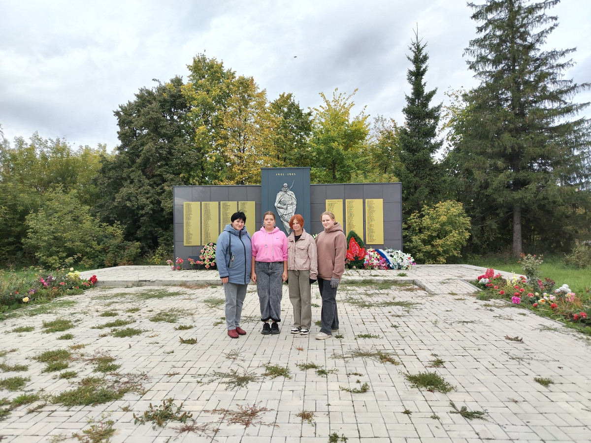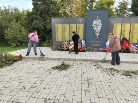 Просмотрели с моими одиннадцатиклассниками фильм "Торопись жить". Формируемое качество - обязанность. Фильм очень впечатлил моих девочек, заставил о многом задуматься. Хотя изначально дети были настроены по - другому. Идея по выполнению какого-то дела пришла сразу, не долго думая. У нас в селе имеется памятник, погибшим односельчанам в годы ВОв. Время от времени его необходимо приводить в порядок, т.к. сорная растительность покрывает всю поверхность плитки. Памятник является одним из почитаемых мест в нашем селе, и поэтому его нужно содержать в порядке. В один из выходных дней мы с девочками взяли всё необходимое, пришли к памянику и навели там порядок. Работа была не в тягость. Девочки осознавали свою причастность к судьбам тех людей, которые для нас отвоевали мирное небо. Обязанностью потомков является ПАМЯТЬ и УВАЖЕНИЕ к этим людям. После окончания уборки девочки предложили ещё несколько вариантов выполнения разного вида работ.
