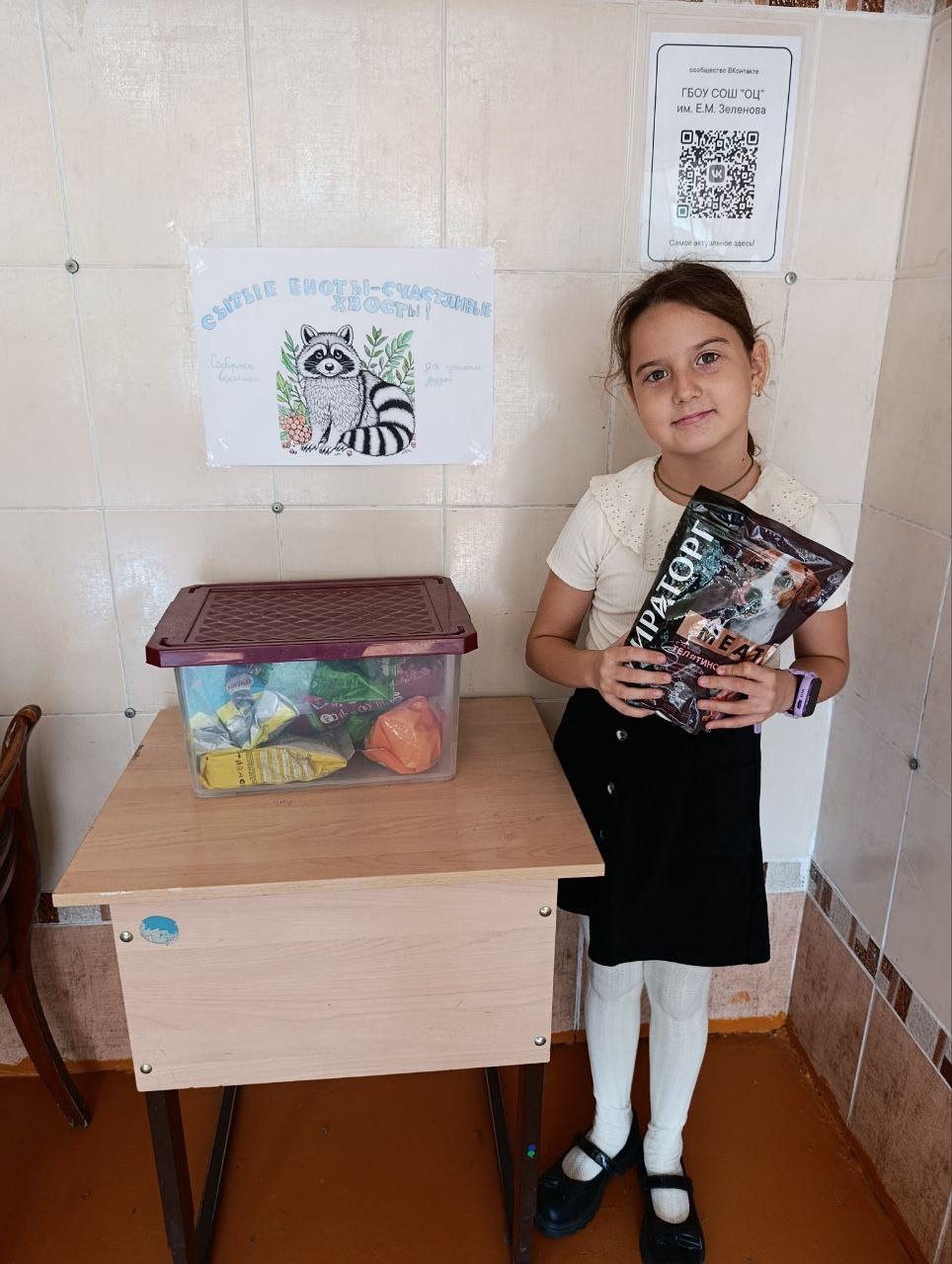 Ребята откликнулись на предложение помочь животным-енотам из приюта и собрать для них корм. Родители детей так же поддержали их желание и активно участвовали в акции.