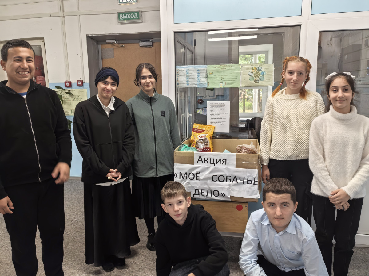 Именно поэтому семиклассники приняли участие в акции " Мое собачье дело"! Учащиеся вместе с другими школьниками приносили еду для собак. А потом весь корм отвезли в приют для животных!