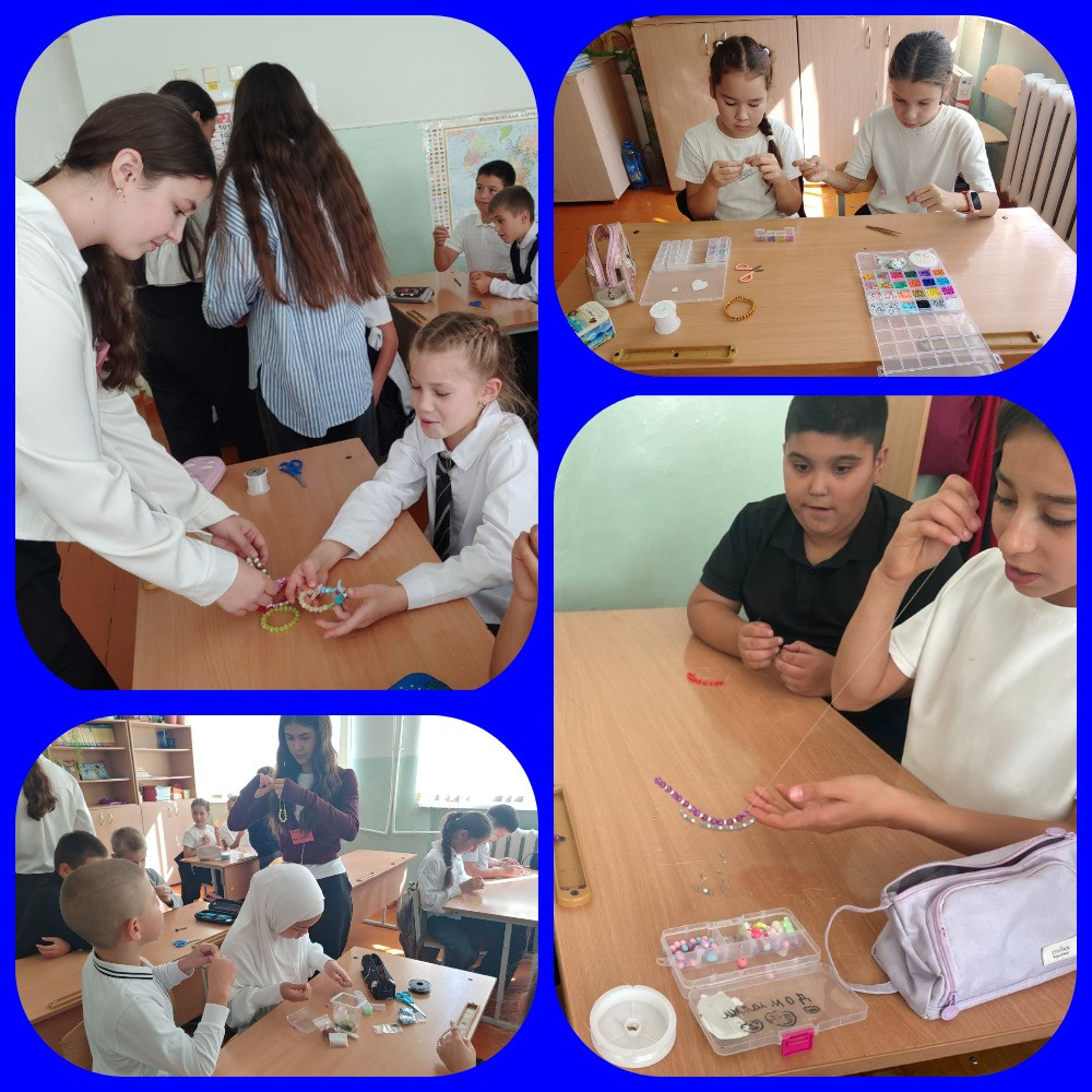 Учащиеся 8 класса предложили принять участие во Всероссийской социальной акции «Операция Бусики», направленной на укрепление связей между поколениями и воспитание чуткости, доброты и социальной ответственности у детей. В рамках акции ребята совместно с младшими школьниками сплели браслеты из бусин, которые планируют подарить одиноким пожилым людям 1 октября, в Международный день пожилого человека.