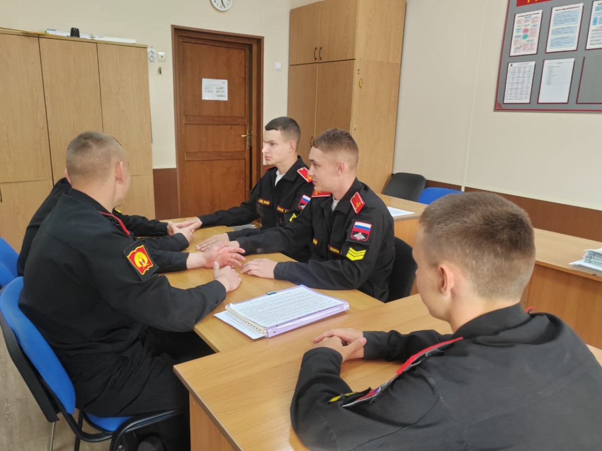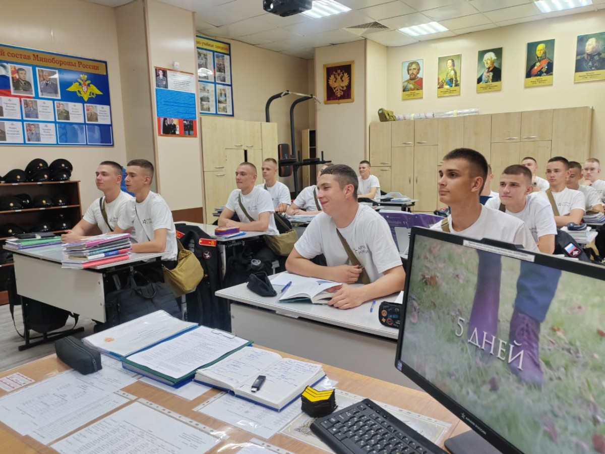 В рамках проекта «Киноуроки в школах России» для сентябрьского просмотра ребята выпускной суворовской роты выбрали фильм Елены Дубровской «Пять дней». В ходе предварительной беседы, размышляя о созидательном труде как этическом понятии, суворовцы составили такое определение: созидательный труд — это целенаправленная творческая деятельность, способствующая развитию самой личности и преобразовывающая окружающее пространство. Поговорили и о различиях понятий труд и работа. По мнению ребят, разница небольшая, но существенная. Труд приносит радость труженику и пользу людям, а работа дело нужное, но рутинное и обязательное. Работа удовлетворяет, а труд облагораживает. Перед демонстрацией кинокартины воспитанники услышали цитату Максима Горького «На день надо смотреть как на маленькую жизнь».