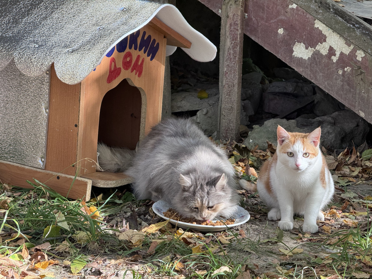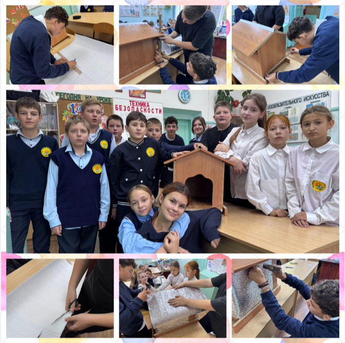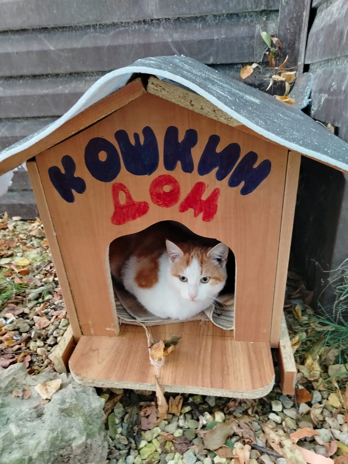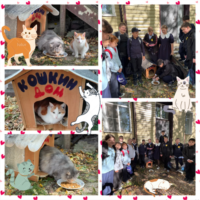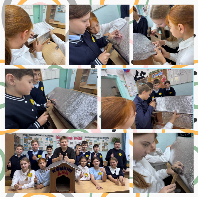 Взявшись за дело, ребята обратились за помощью к школьному слесарю Владимиру Николаевичу Илюшову, который с радостью согласился изготовить каркас домика для кошек. Ребята самостоятельно утеплили его, украсили домик надписью и установили его в том месте, где прижилась целая кошачья семья, что стало настоящим событием для ребят.