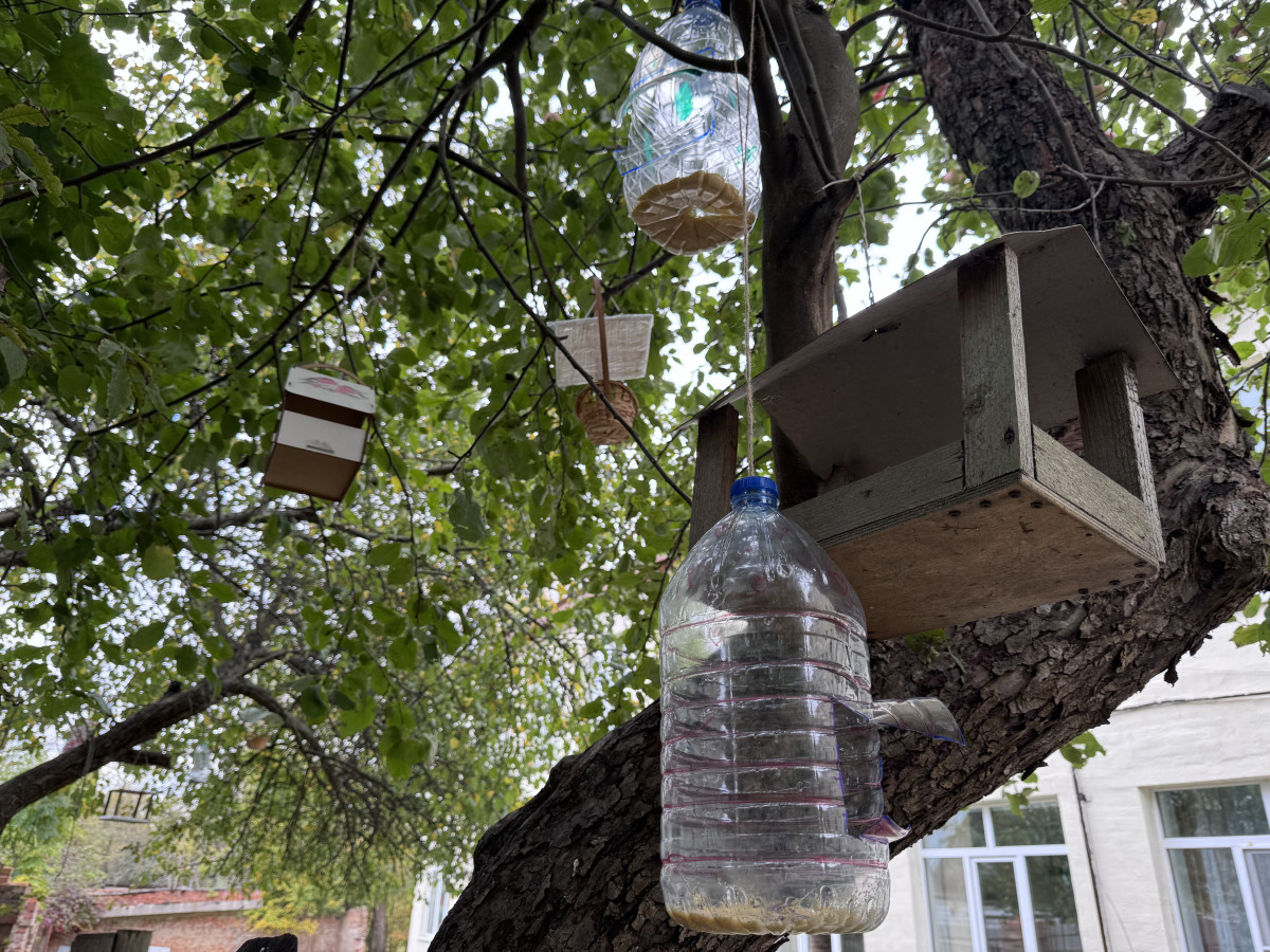 В один из солнечных дней весь класс дружно вышел во двор, чтобы развесить их на деревьях прямо напротив окон своего кабинета. Теперь у ребят есть возможность наблюдать за пернатыми гостями прямо из класса.
