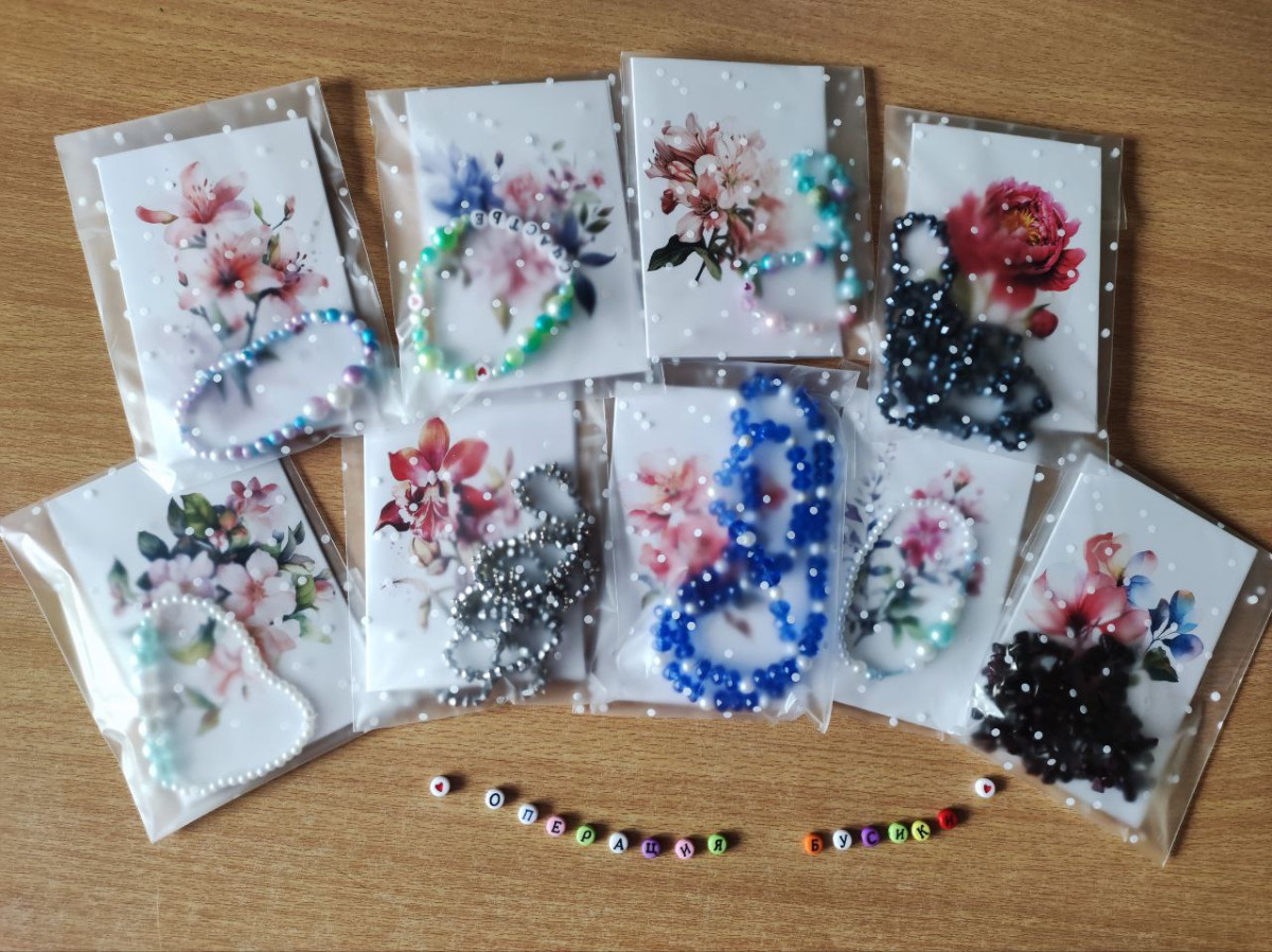 Ребята с теплотой и трепетом, своими руками, изготовили бусы, часть из которых в дальнейшем будут отправлены в Краевой Дом Ветеранов г. Комсомольск-на-Амуре и поднимут настроение нашему пожилому поколению!