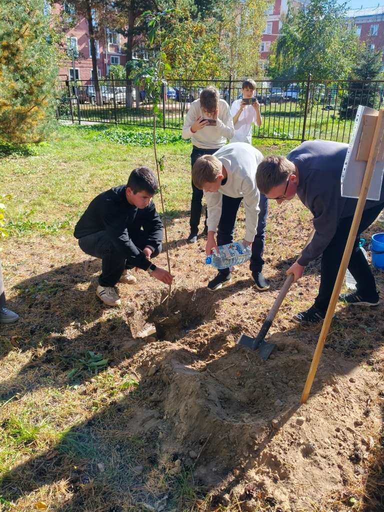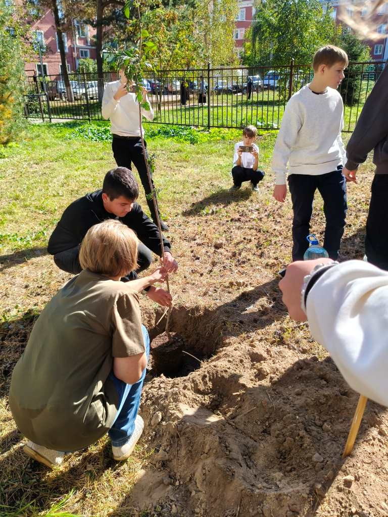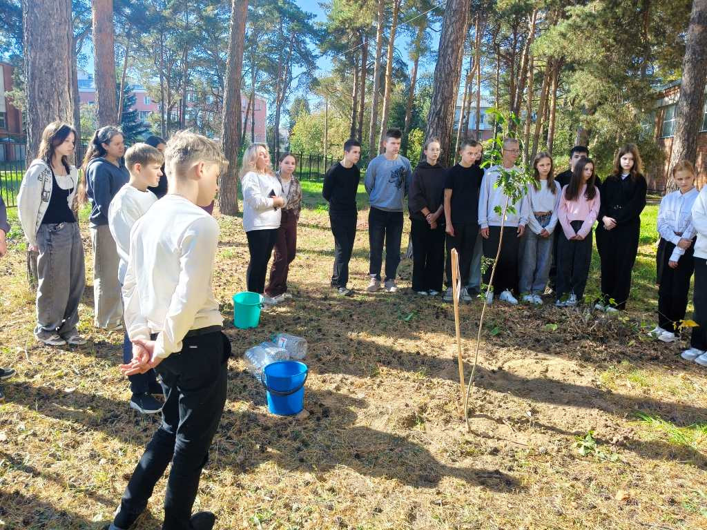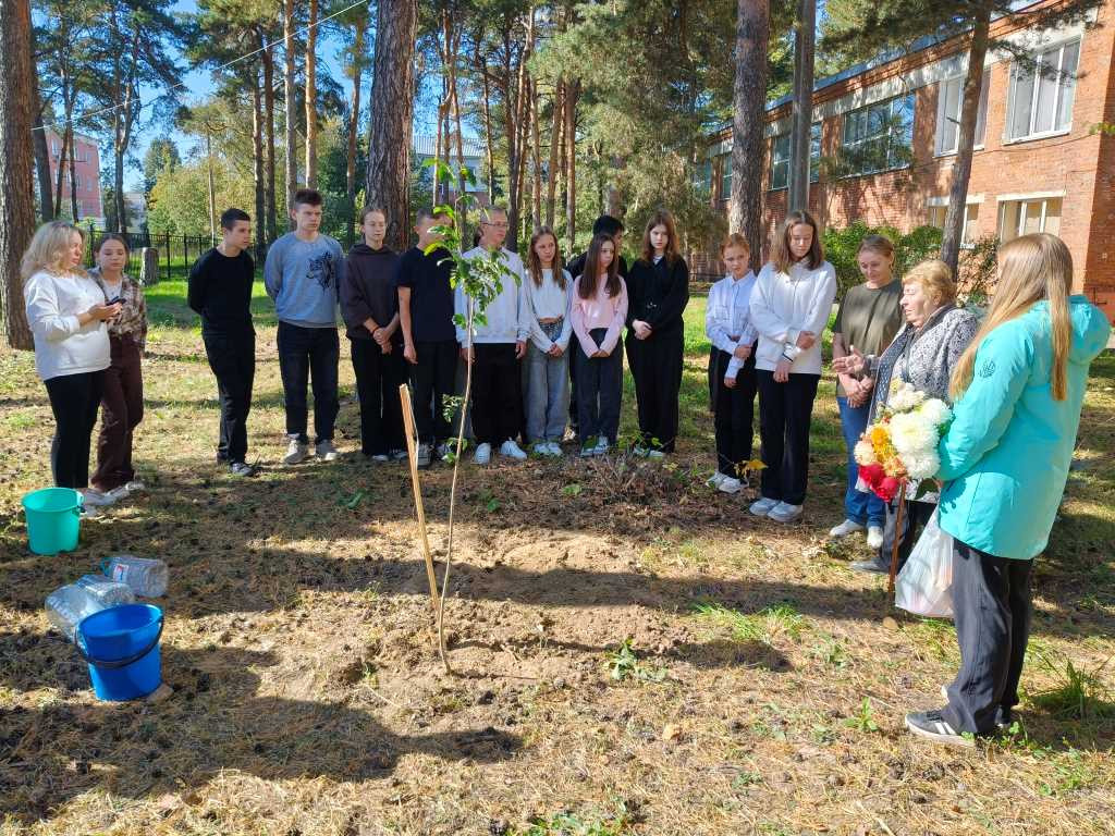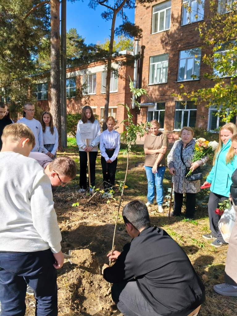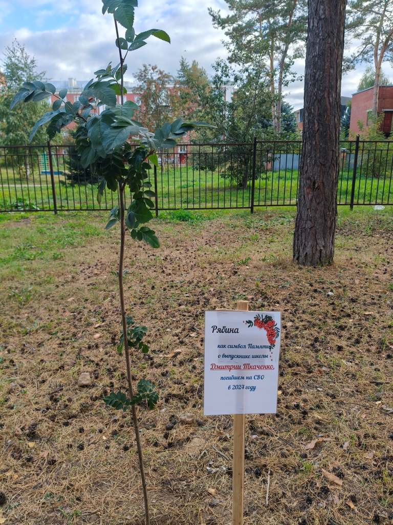 В качестве социальной практики было решено посадить во дворе школы саженец рябины в знак Памяти погибшему на СВО выпускнику школы Дмитрию Ткаченко. Родители поддержали инициативу ребят. Мама Ольги Юрченко даже сказала, что дерево уходит корнями в земл., а ветвями тянется к небу. Тело человека, покинувшего этот мир опускается в землю, а душа подниматся к небу. Сажать дерево в Память о погибших в благодарность от живущих - это важная и благородная обязанность.