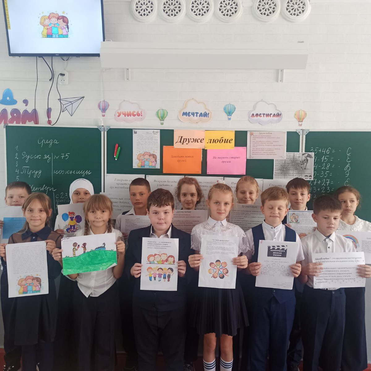 В сентябре учащиеся 3-Б класса с интересом посмотрели первый в этом учебном году фильм киноуроков «Песня ветра», в котором раскрывается нравственное качество – дружелюбие. После просмотра, ребята выразили свое отношение к просмотренному, обсудили поступки героев, сделали вывод: дружелюбие состоит из двух слов – «друже» и «любие» (любить друзей), а выполнив тренинги, разобрав ситуации, поиграв в игры, получив задание на дом, погрузившись в тему и подготовив сообщения, резюмировали: дружелюбие – умение и желание дружить, быть внимательными к окружающим, заводить новых друзей и беречь прежних, поддерживать со всеми приятельские отношения.