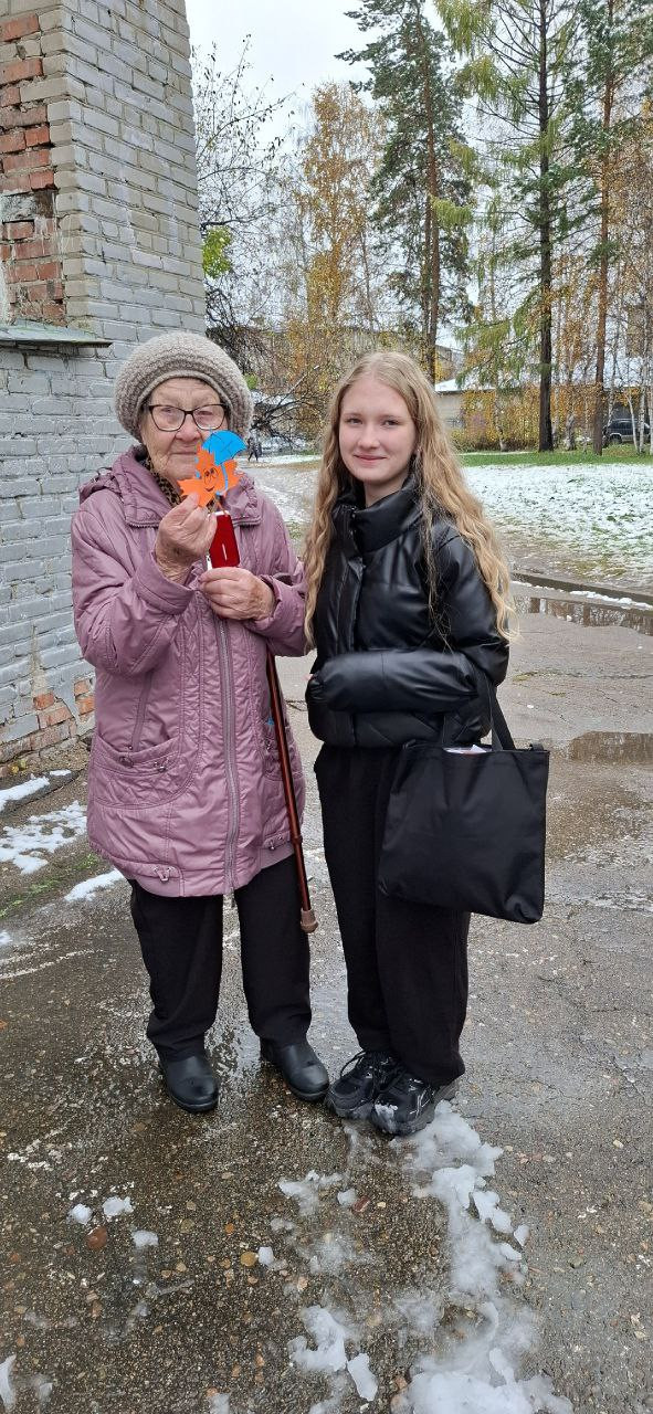 Ребята поздравили пожилых соседей, которые уже редко выходят из дома. Несколько минут общения и открытка, сделанная детской рукой, — казалось бы, немного, но для кого-то это стало настоящим событием дня.