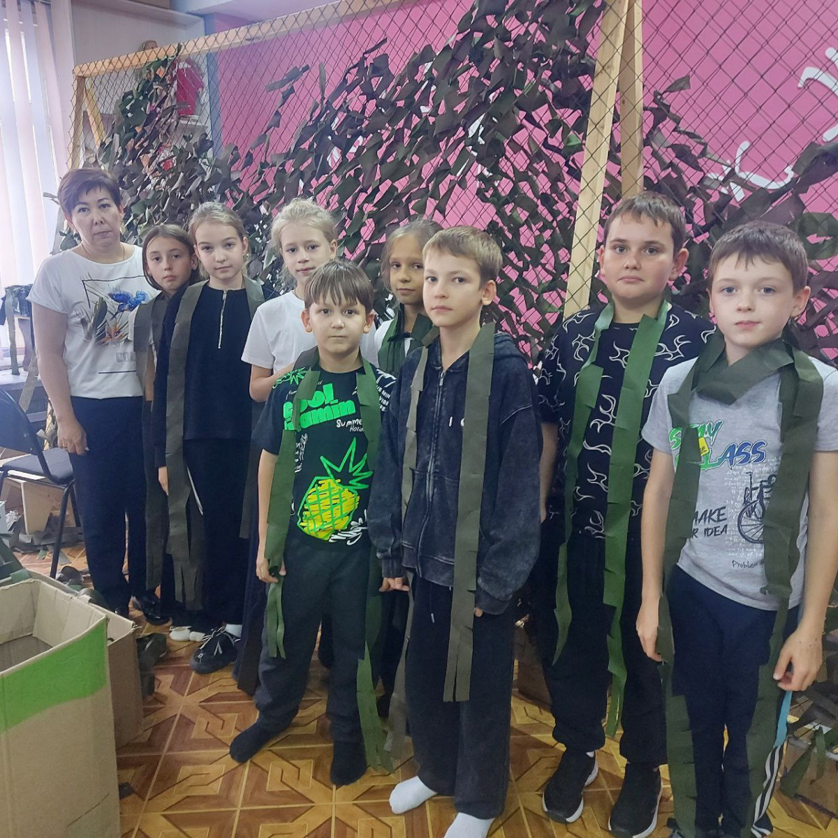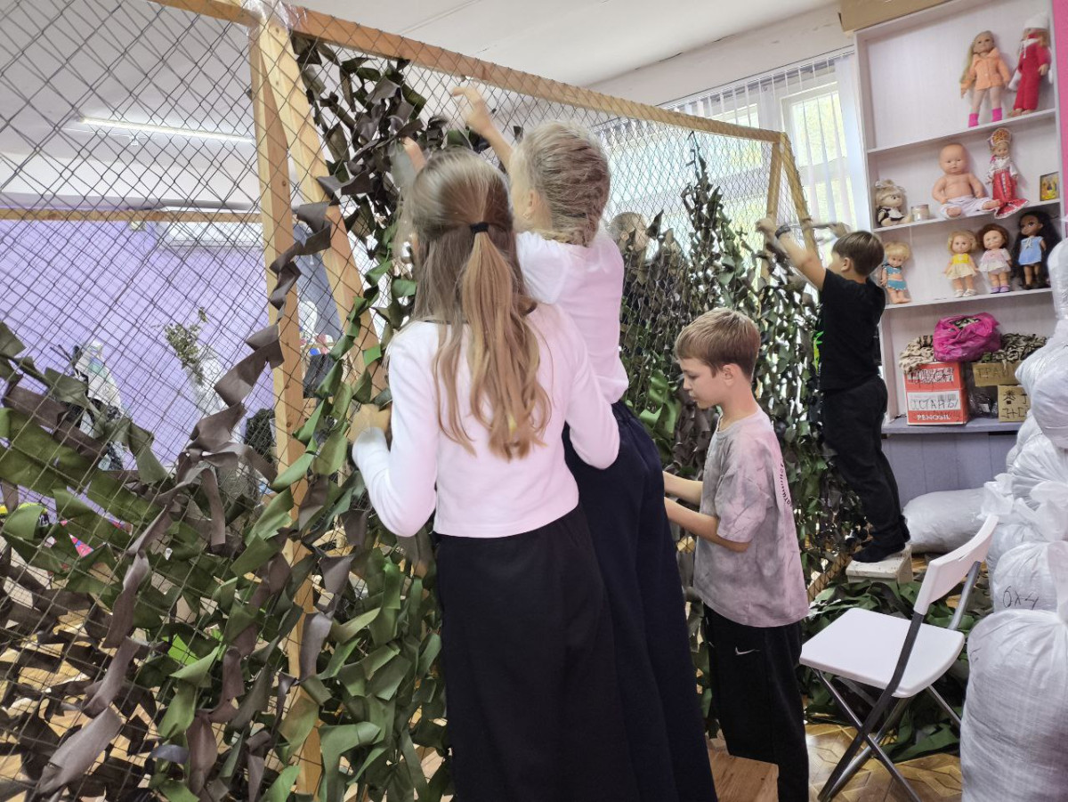 В благотворительном клубе «Петельки добра» школьники изготовили маскировочную сеть, вкладывая частичку своей души в каждый элемент изделия. Эта сеть будет передана волонтерами клуба на передовую, что станет наглядным проявлением солидарности и поддержки.