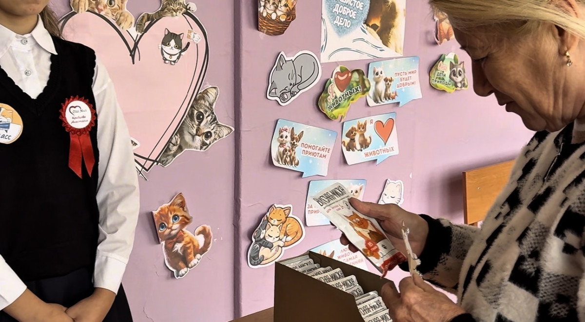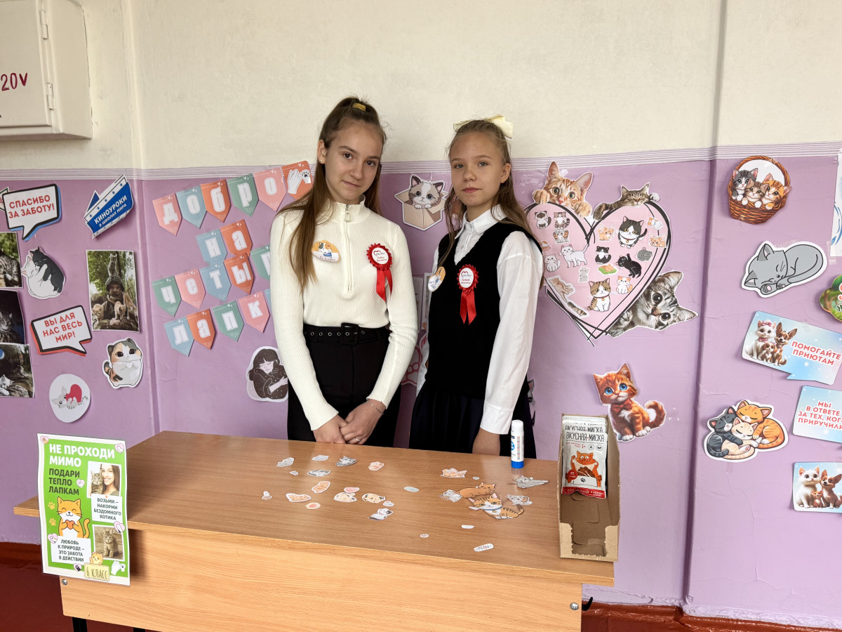 В день акции мы оформили в школе «сердце доброты» ❤️. Каждый мог взять корм для кошки 🐈 и приклеить на большое сердце стикер 🐾 — знак того, что он неравнодушен. Мы также напомнили ребятам, что помогать животным нужно не только с любовью 💖, но и с осторожностью. Ведь бездомные кошки могут быть напуганы или больны. Поэтому мы обсудили простые правила: кормить лучше из пакетиков или мисочек, не с руки; не брать незнакомых животных на руки; после контакта обязательно мыть руки 🧼. Так дети поняли, что добро всегда должно идти рядом с ответственностью 🤲.