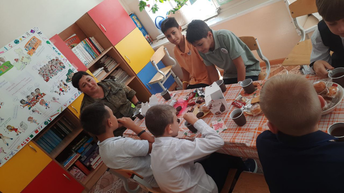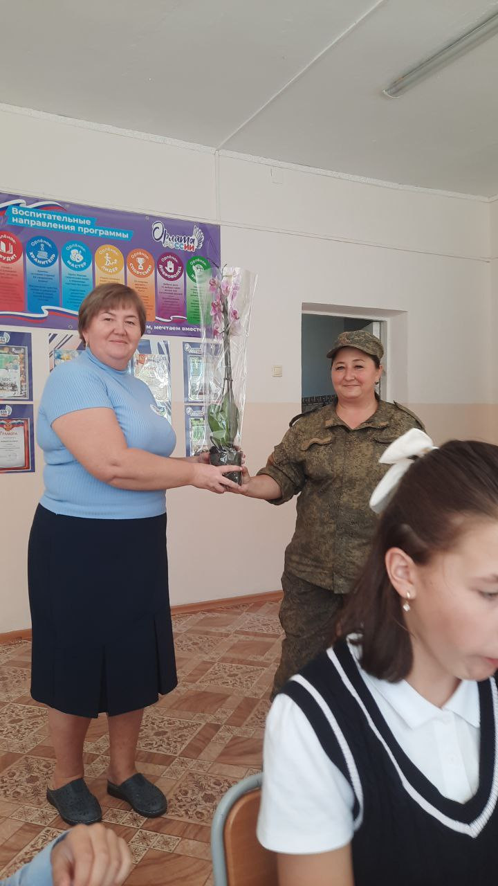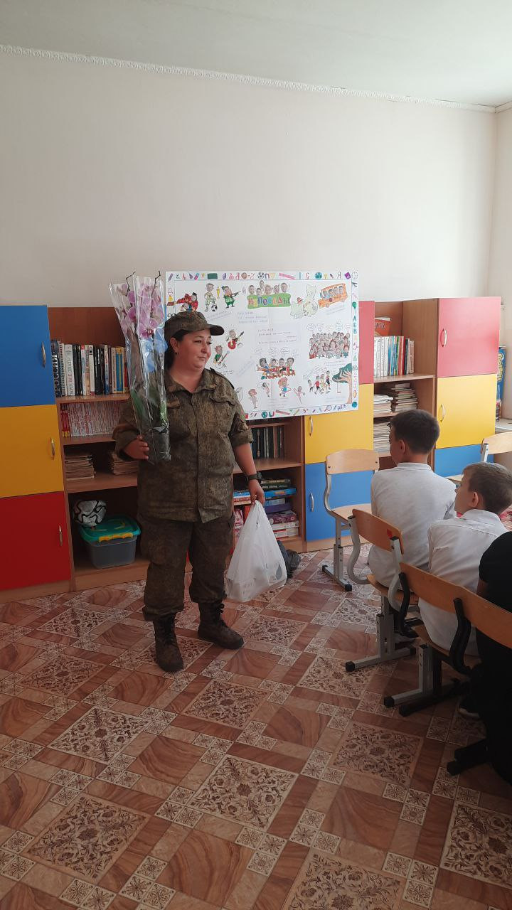 Мы накрыли стол и ждали гостей: бойца, находящегося на лечении после ранения и нашего волонтера. К сожалению, боец прийти не смог, но передал подарки для нашего класса. Теперь у нас в классе растет орхидея, подаренная им. Ребята немного расстроились, но скоро засыпали вопросами руководителя волонтерской группы "Своих не бросаем". Наталья Петровна рассказала о встрече с бойцами в госпитале, о том, как они обрадовались нашим гостинцам. Рассказала она и о своей работе. И подтвердила, что все бойцы убеждены, что победа будет за нами!