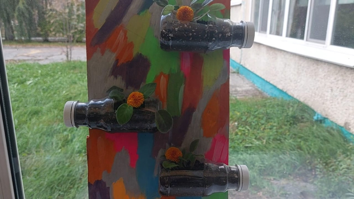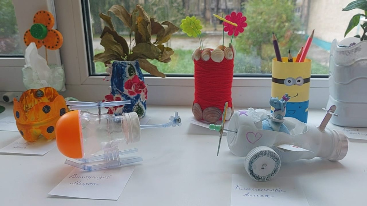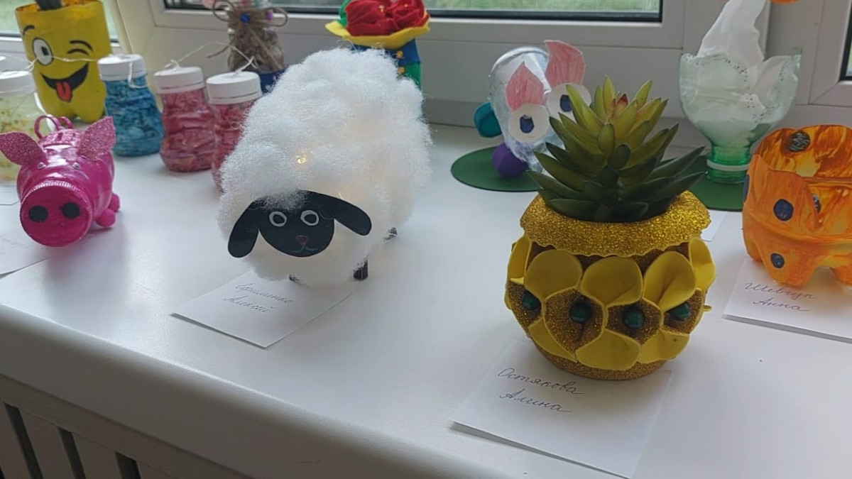 Во время субботника детьми были найдены пластиковые бутылки. Учащиеся задумались над возможностью вторичного использования отходов. Дома под руководством родителей ученики изготовляли разнообразные изделия из пластиковых бутылок. Были созданы кормушки для птиц, оригинальные горшки для цветов, детали интерьера. Своими идеями ребята поделились с друзьями из 1 В класса во время классного часа.