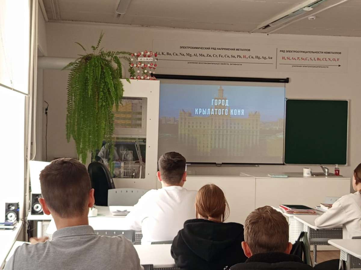 Обучающиеся посмотрели профориентационный фильм "Город крылатого коня". Фильм раскрывает такое духовно-нравственное качество как вдохновение. Главный герой Фёдор – пример честного, вдохновлённого своей идеей и увлеченного профессией молодого строителя будущего. Через взаимоотношения героев фильмов ученики сделали вывод, что невозможно сделать что-то значительное для будущего в равнодушии. Обучающиеся поняли, что качество вдохновение зависит так же от умения начать работу и сохранять интерес к деятельности. Что вдохновение может быть не только спонтанным, но и результатом сознательных усилий.