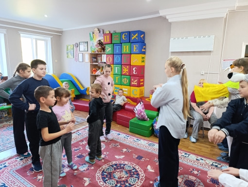 Пятиклассники подготовили мини-сказку, игровую программу и песни для особенных детей из реабилитационного центра. Для реализации своей практики дети при помощи классного руководителя обратились к директору Стахановского отделения Республиканского центра социальной реабилитации детей-инвалидов «Возрождение» Солдатенко А.П. и педагогу центра Мирошниченко А.А. Также дети попросили родителей приобрести небольшие подарки для детей с особыми потребностями. При посещении центра дети демонстрировали внимание и заботу о детях, создавая атмосферу доверия и открытости. Дети с ограниченными возможностями чувствовали поддержку сверстников, открываясь новым эмоциям и переживаниям. Участники практики получили опыт самостоятельного принятия решений, выбора инструментов и форм самовыражения.