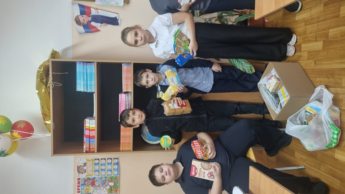 Ещё учащиеся предложили не ограничиваться одним только классом, ведь наша страна - огромная дружная семья. Накануне Дня народного единства, весь класс принял решение присоединиться к акции «Доброе дело», организованной волонтёрами Подмосковья муниципального округа Чехов. С помощью родителей и классного руководителя, Зинаиды Ивановны М., собрали гуманитарную продуктовую посылку для жителей новых регионов и военнослужащих в зоне специальной военной операции. Таким поступком дети и родители проявили солидарность в такое непростое время! Друзья в беде не бросают!