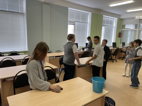 Она была направлена на генеральную уборку кабинета. После уроков ученики в полной готовности полили цветы, вымыли парты, стулья, стены. Простые дела, которые мы совершаем каждый день, могут приносить радость чувство сопричастности к общему делу.