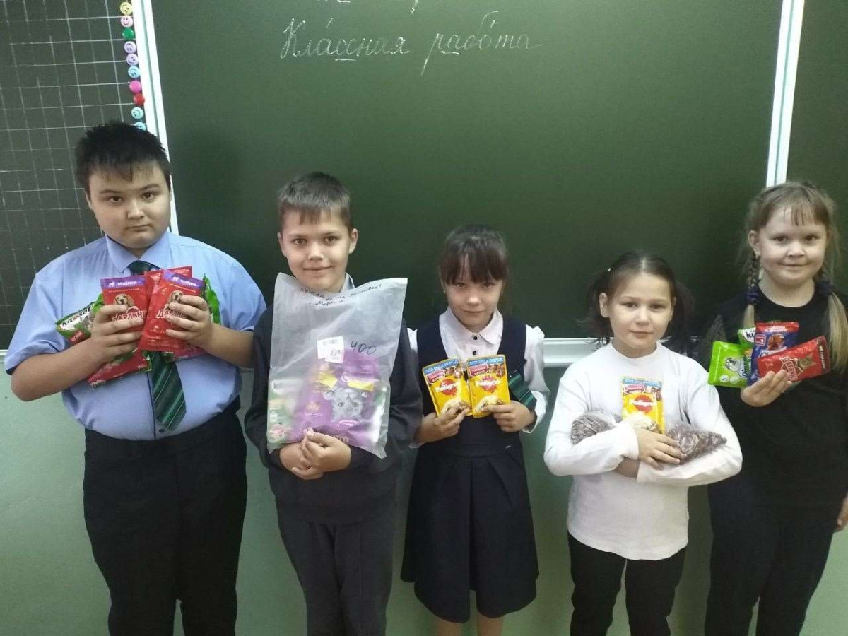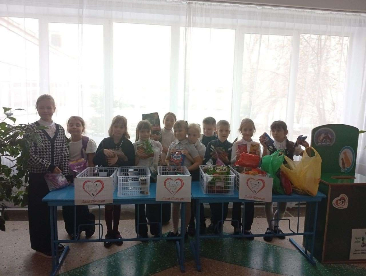 Сбор кормов и средств: Они установили в школе ящики для сбора сухого и влажного корма для животных.