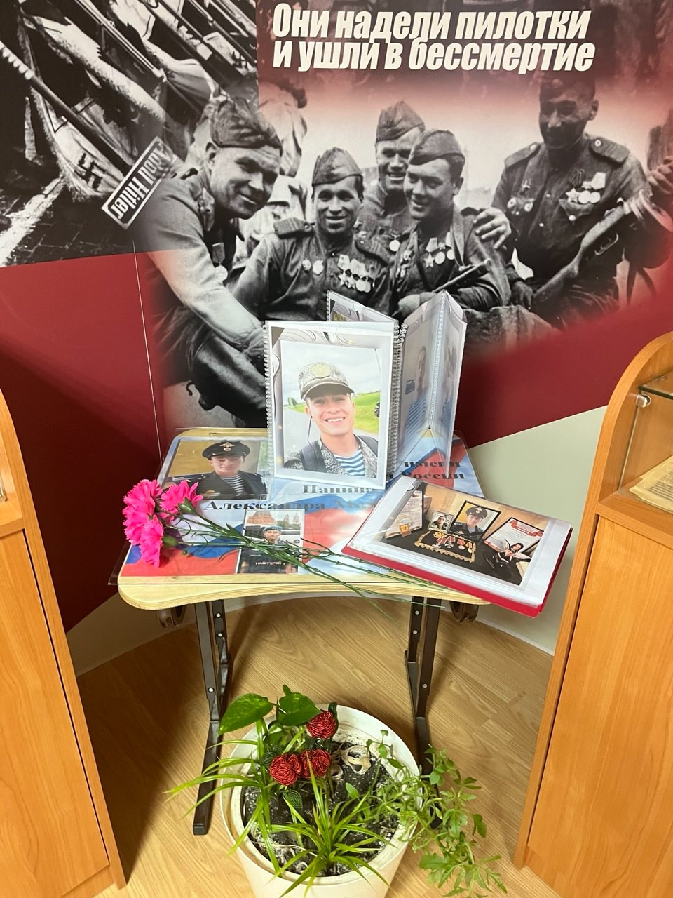 4. Школьникам в реализации инициативы помогали классный руководитель и педагог-организатор, ответственный за музейную работу в школе. Взрослые помогли с установкой парты героя, со сбором архивных фотографий и связались с семьёй нашего погибшего выпускника.