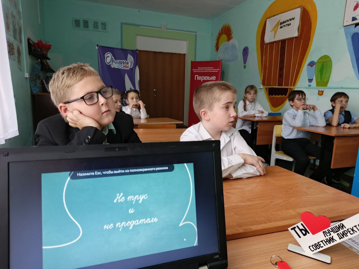 В рамках проекта «Киноуроки» ученики 1-2 класса совместно с 4 классом посмотрели фильм «не трус и не предатель».