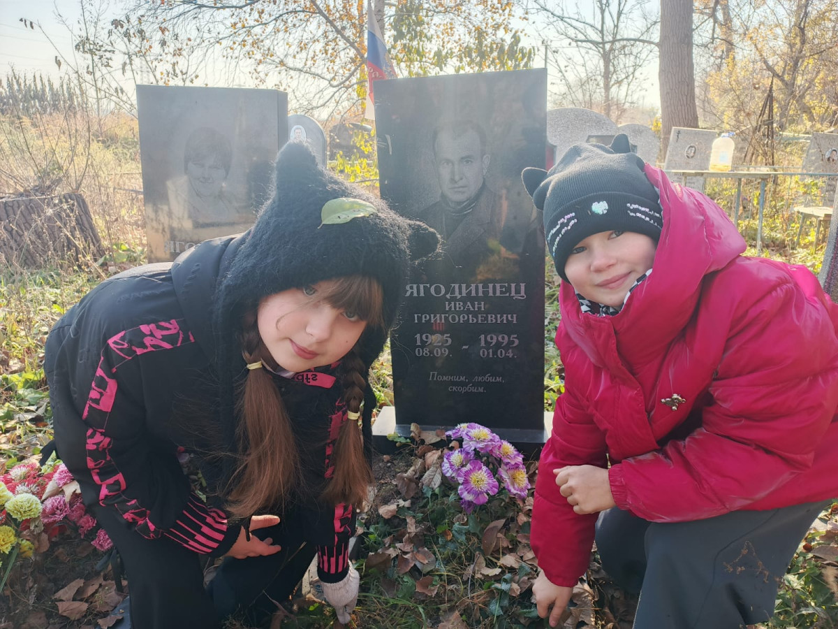 Саша В. напомнила, что осенью необходимо привести в порядок могилы Ветеранов Великой Отечественной войны, поменять флажки, которые устанавливали к 9 Мая, и прибраться на могилке солдата из Беларуси - Лобача В. Ф., родственников которого не теряем надежды найти. И это тревожное доброе дело оказалось по силам четвероклассникам!