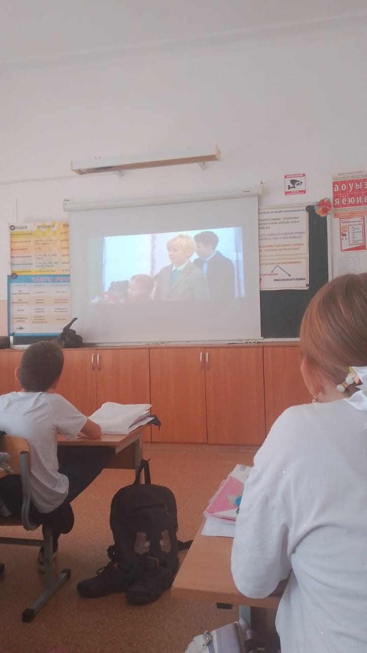 В рамках реализации проекта "Киноуроки в школах России и Мира" ученики 4 класса "В" просмотрели фильм "Первое дело", в котором раскрываются понятия: идейность, убежденность.