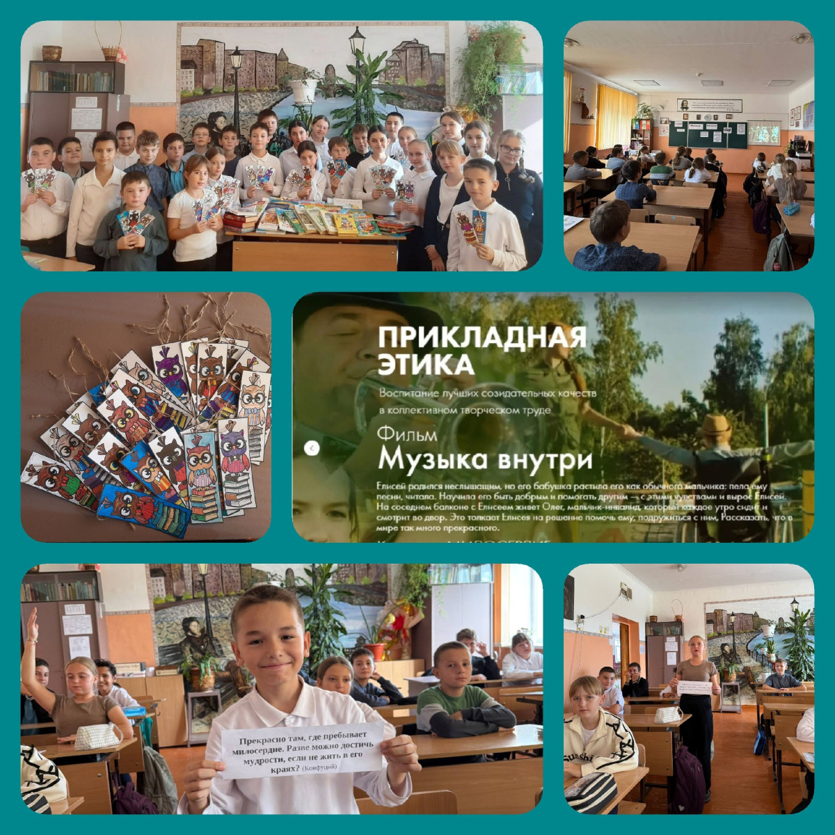 В рамках наставничества «Ученик - ученик» ученики 10 класса провели киноурок для пятиклашек, посвящённый важнейшему человеческому качеству — милосердию. В рамках мероприятия ребята посмотрели фильм «Музыка внутри», рассказывающий трогательную историю о доброте и взаимопомощи.